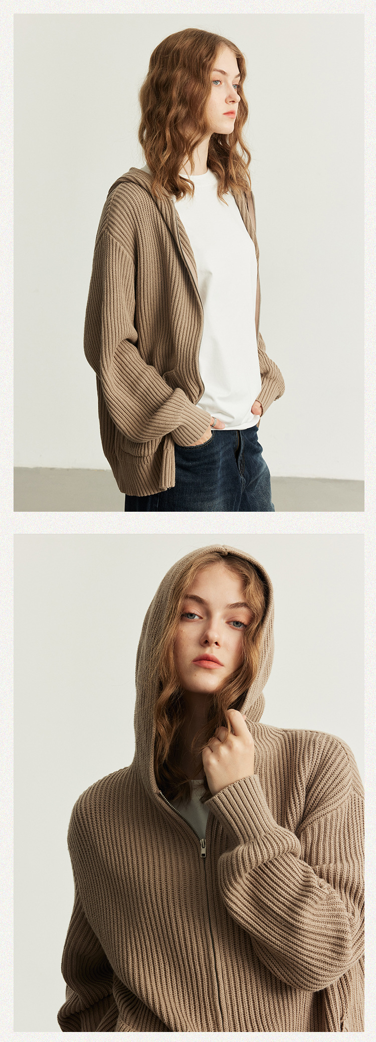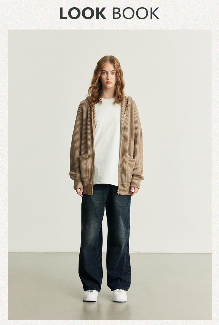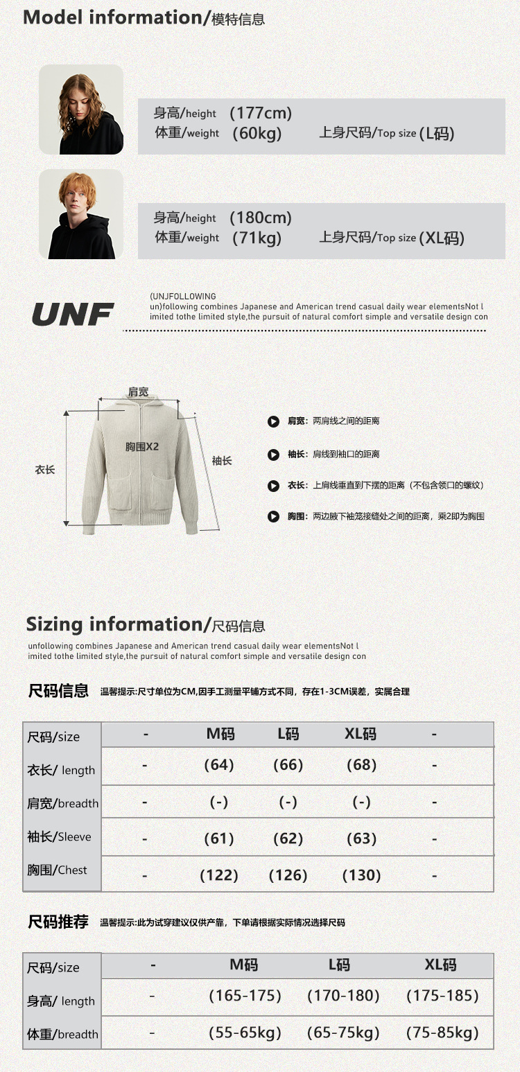 UNF 가을과 겨울 새로운 거리 패션 브랜드 캐주얼 지퍼 니트 가디건 남성과 여성을위한 아메리칸 느슨한 긴 소매 후드 스웨터
