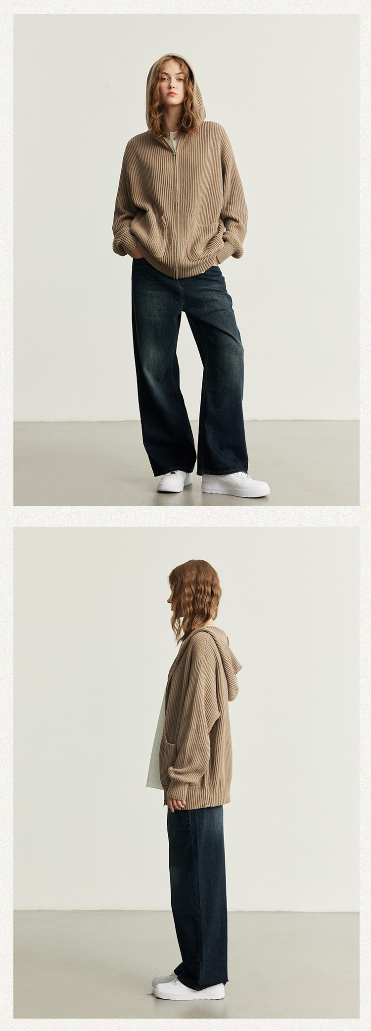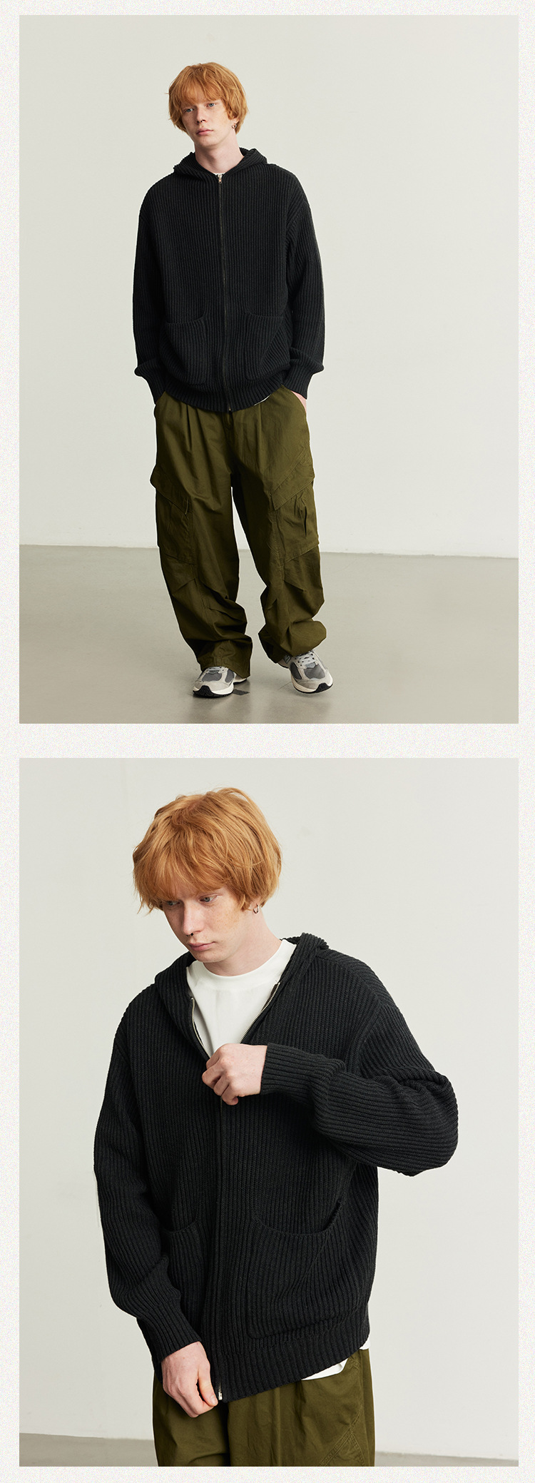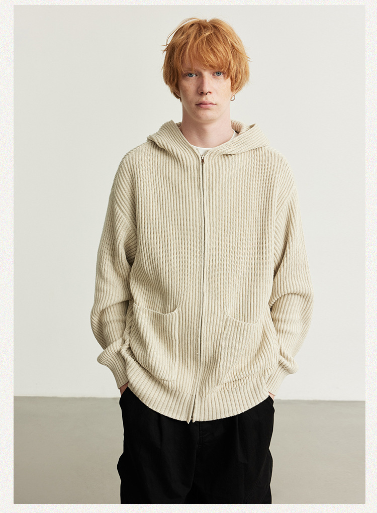 UNF 가을과 겨울 새로운 거리 패션 브랜드 캐주얼 지퍼 니트 가디건 남성과 여성을위한 아메리칸 느슨한 긴 소매 후드 스웨터
