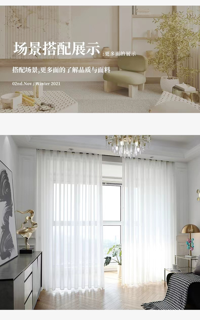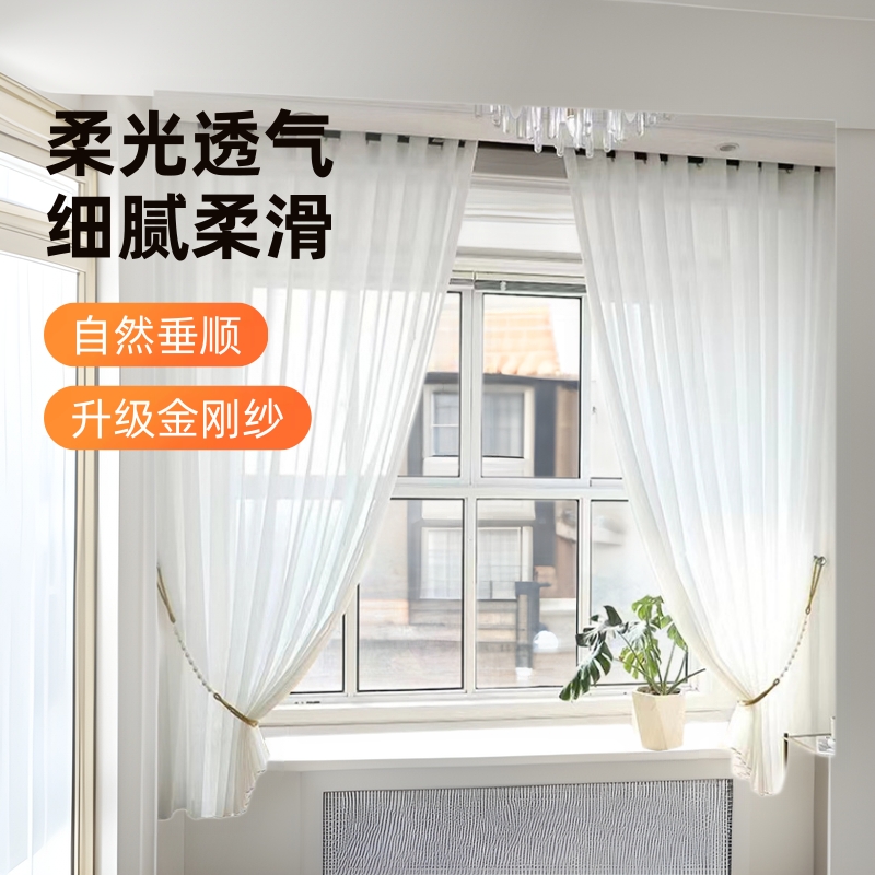안티 후크 실크 킹 콩 원사 커튼 라이트 투명 반투명 빛 럭셔리 화이트 원사 커튼 베이 창 발코니 스크래치 방지 완성 된 창 스크린