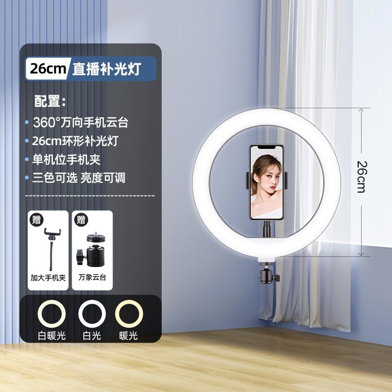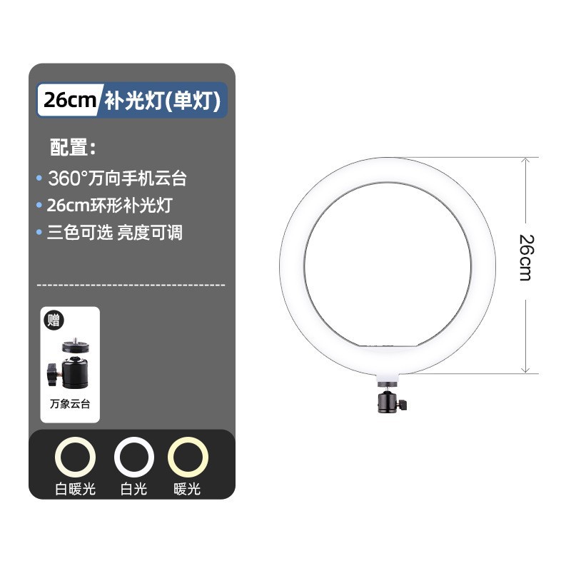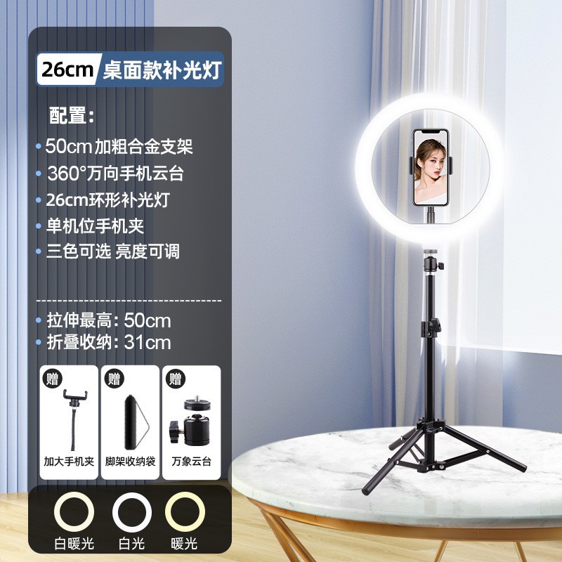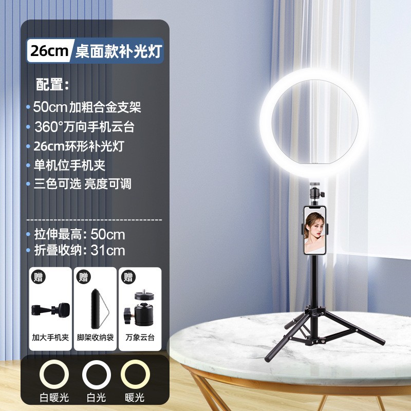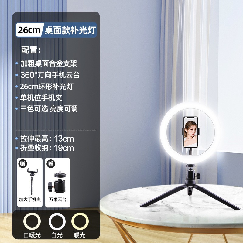 • 데스크탑 브래킷 + 26cm 필 라이트 + 내부 휴대폰 클립