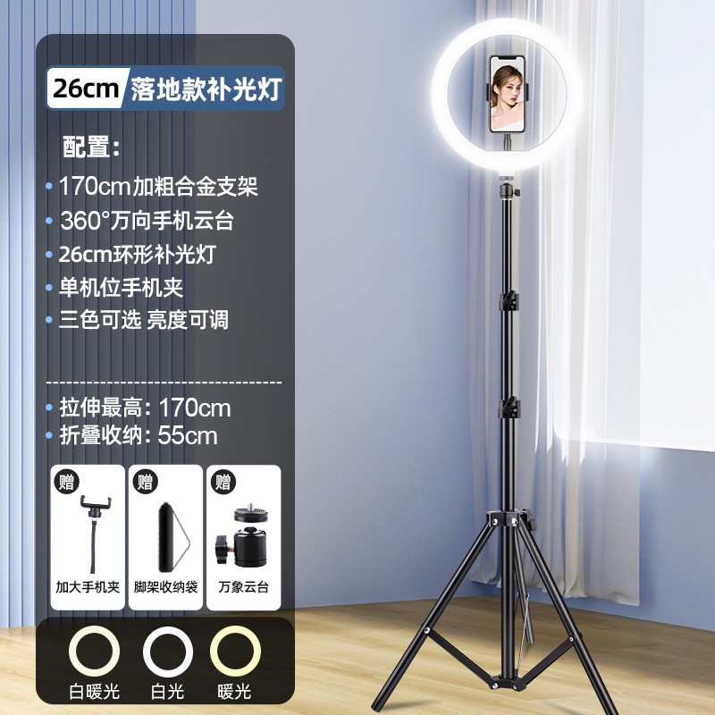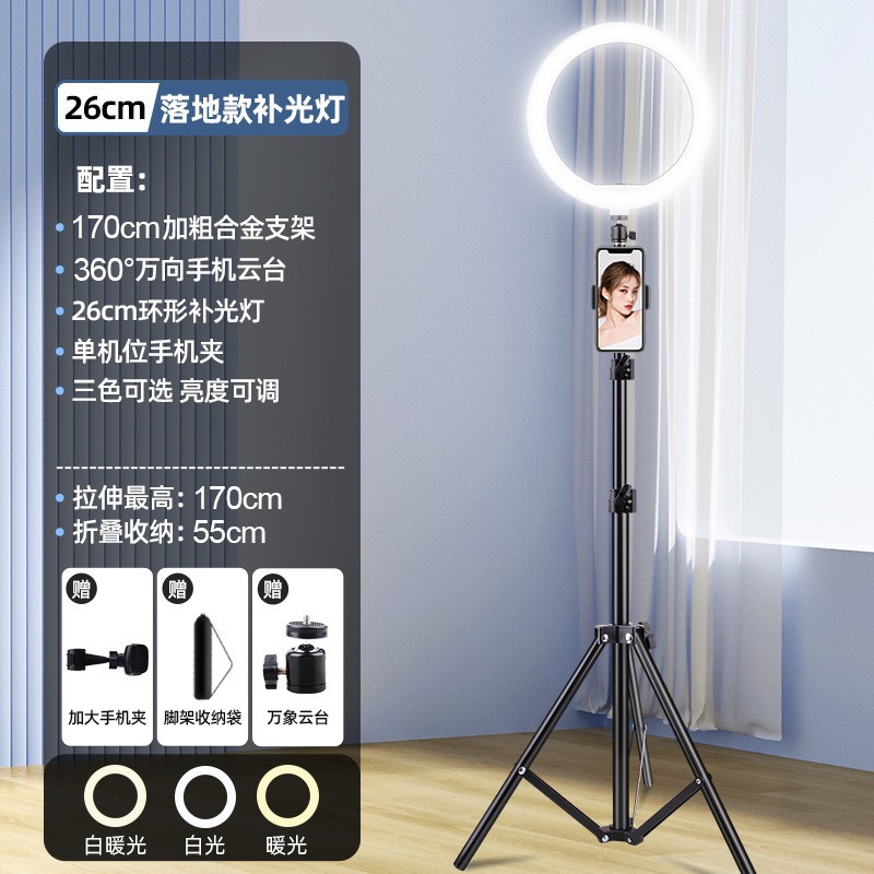 • 160cm 브래킷 + 26cm 필 라이트 + 내부 휴대폰 클립