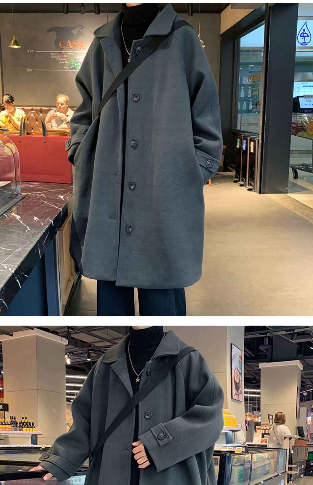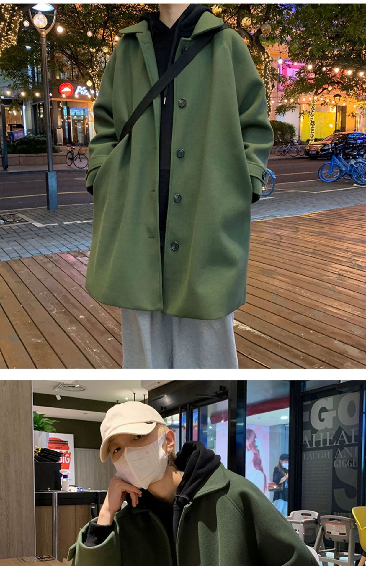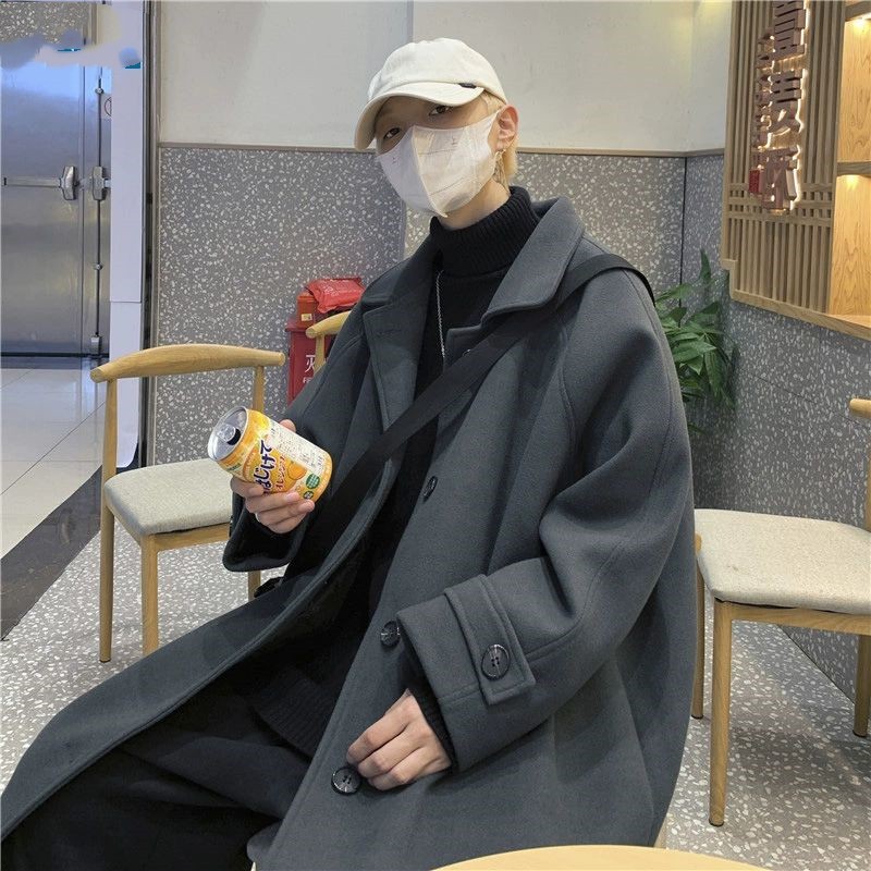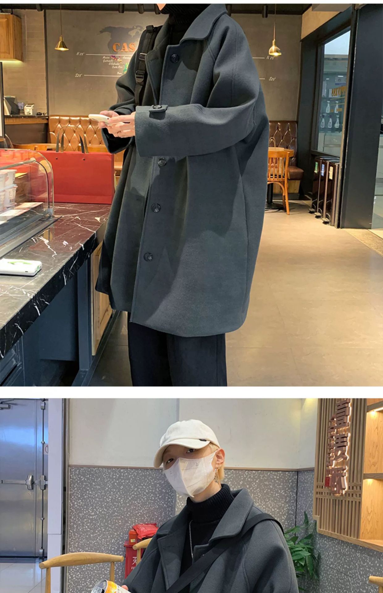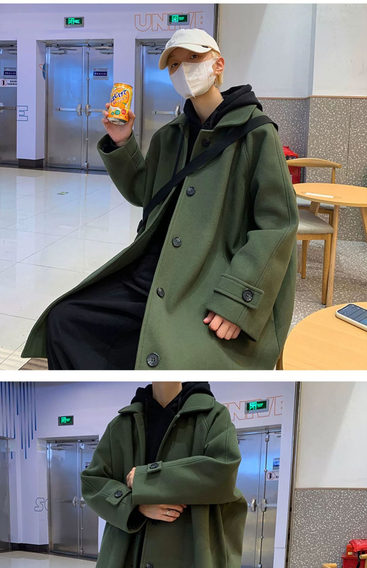 모직 코트 남성 겨울 새로운 한국 스타일의 트렌디 솔리드 컬러 핸섬 모직 코트 커플 만능 캐주얼 재킷