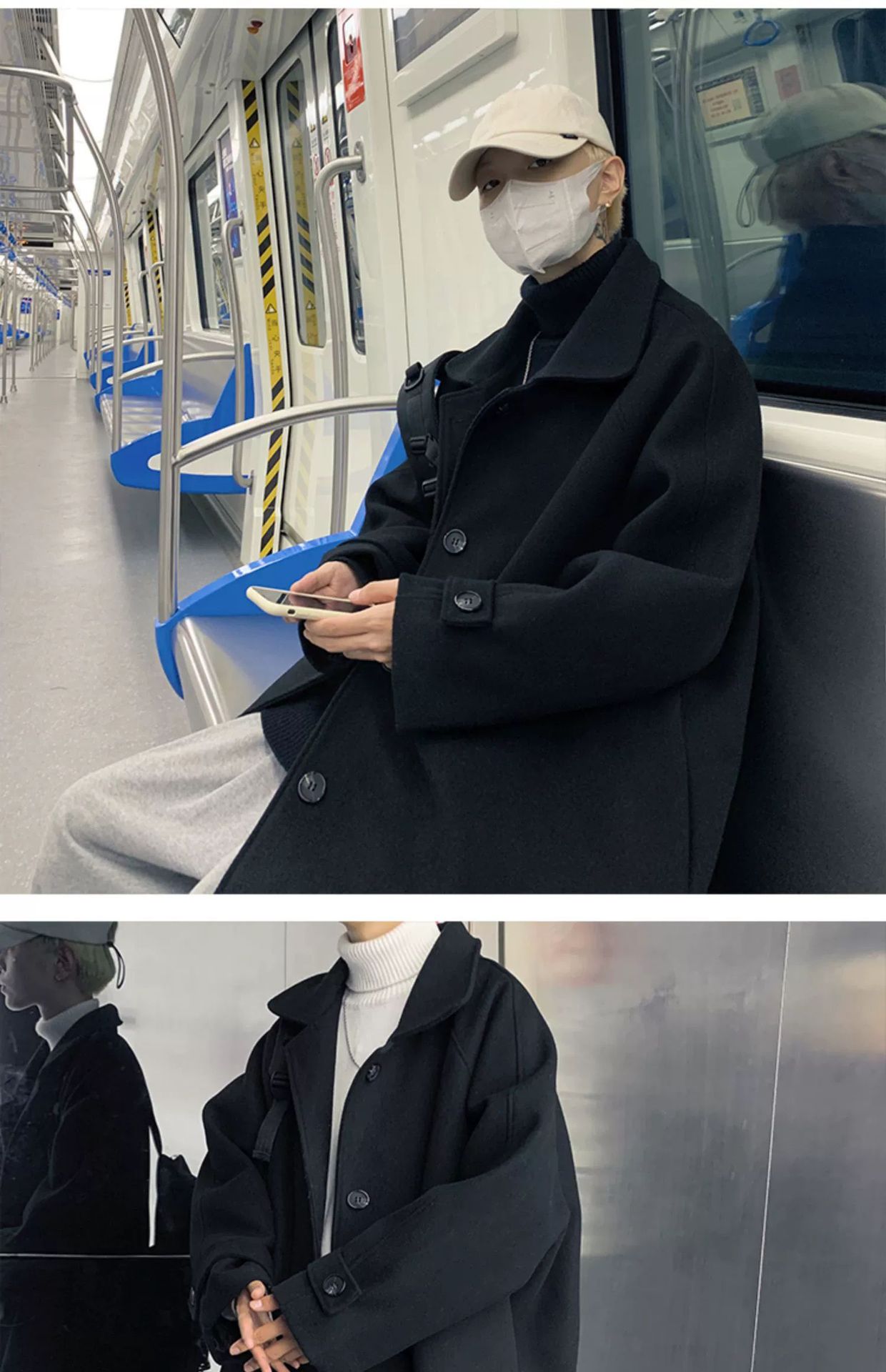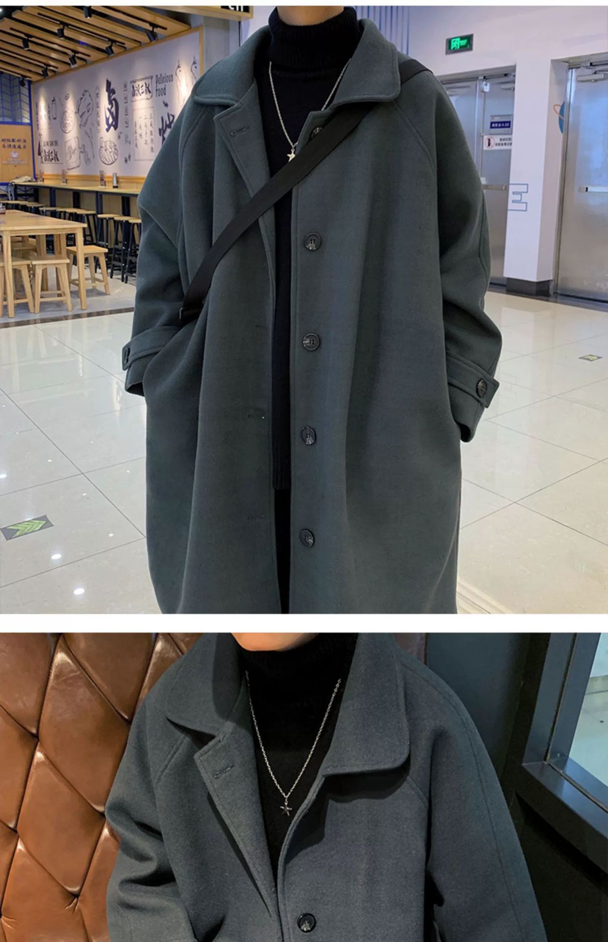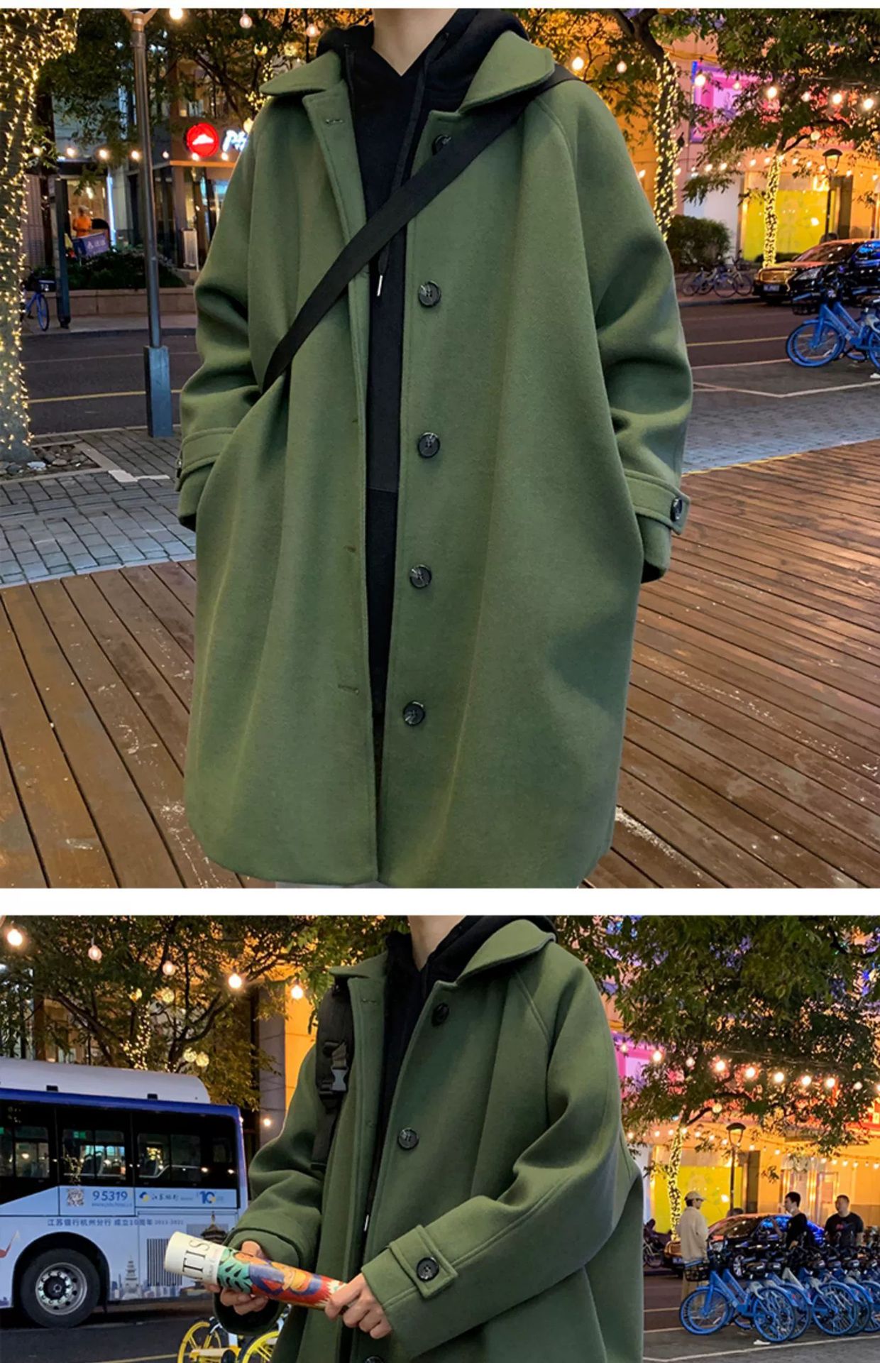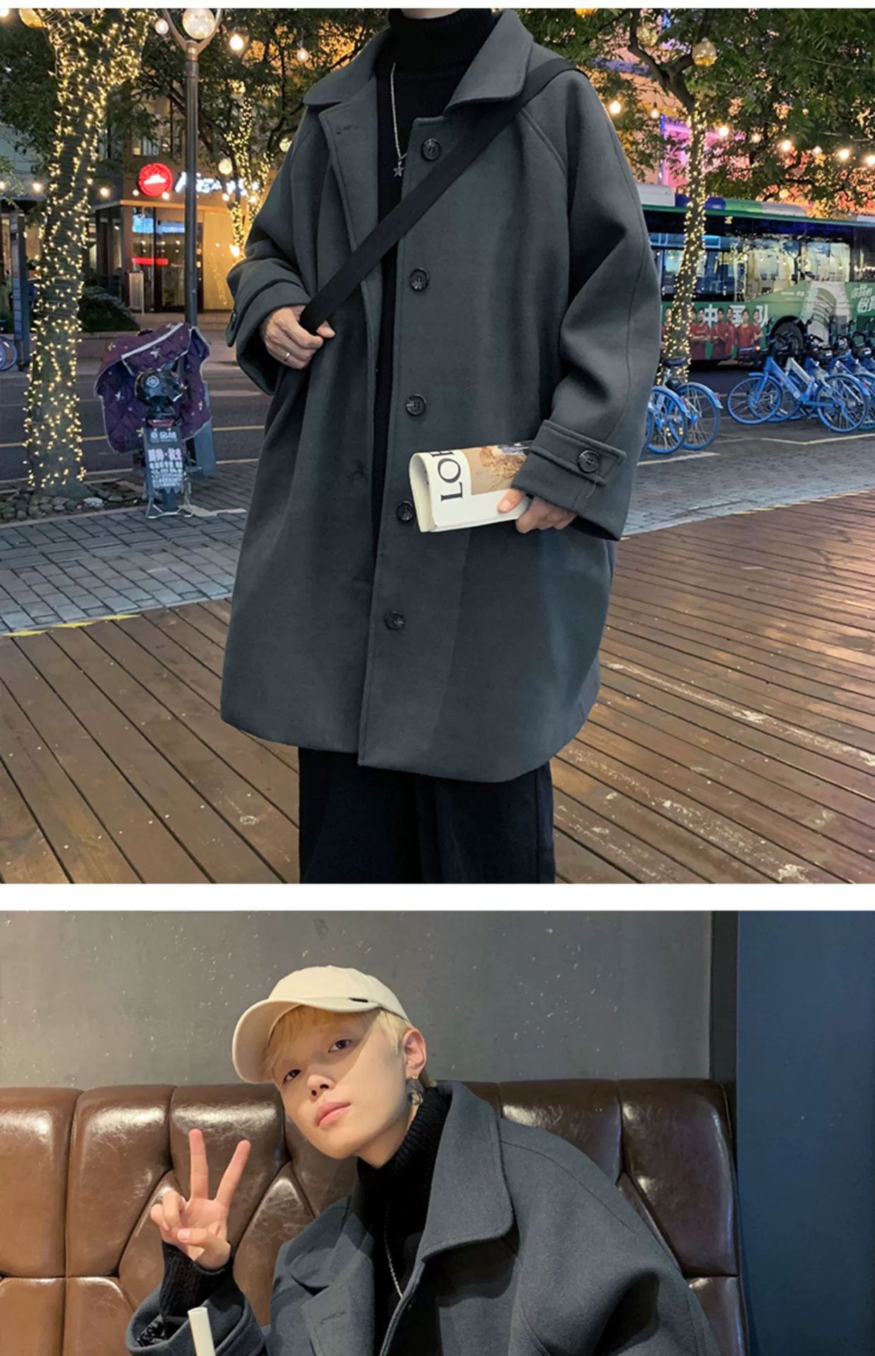 모직 코트 남성 겨울 새로운 한국 스타일의 트렌디 솔리드 컬러 핸섬 모직 코트 커플 만능 캐주얼 재킷