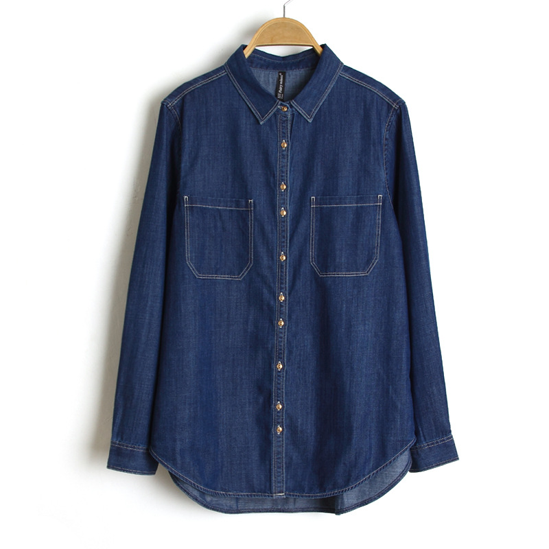 8193 #2024 봄 새 코튼 COOLMAX 캐주얼 셔츠 느슨한 긴 소매 긴 데님 셔츠 여성스토어 가기