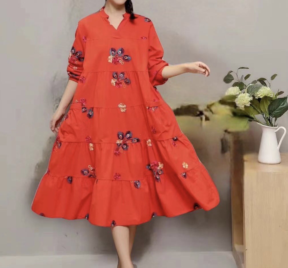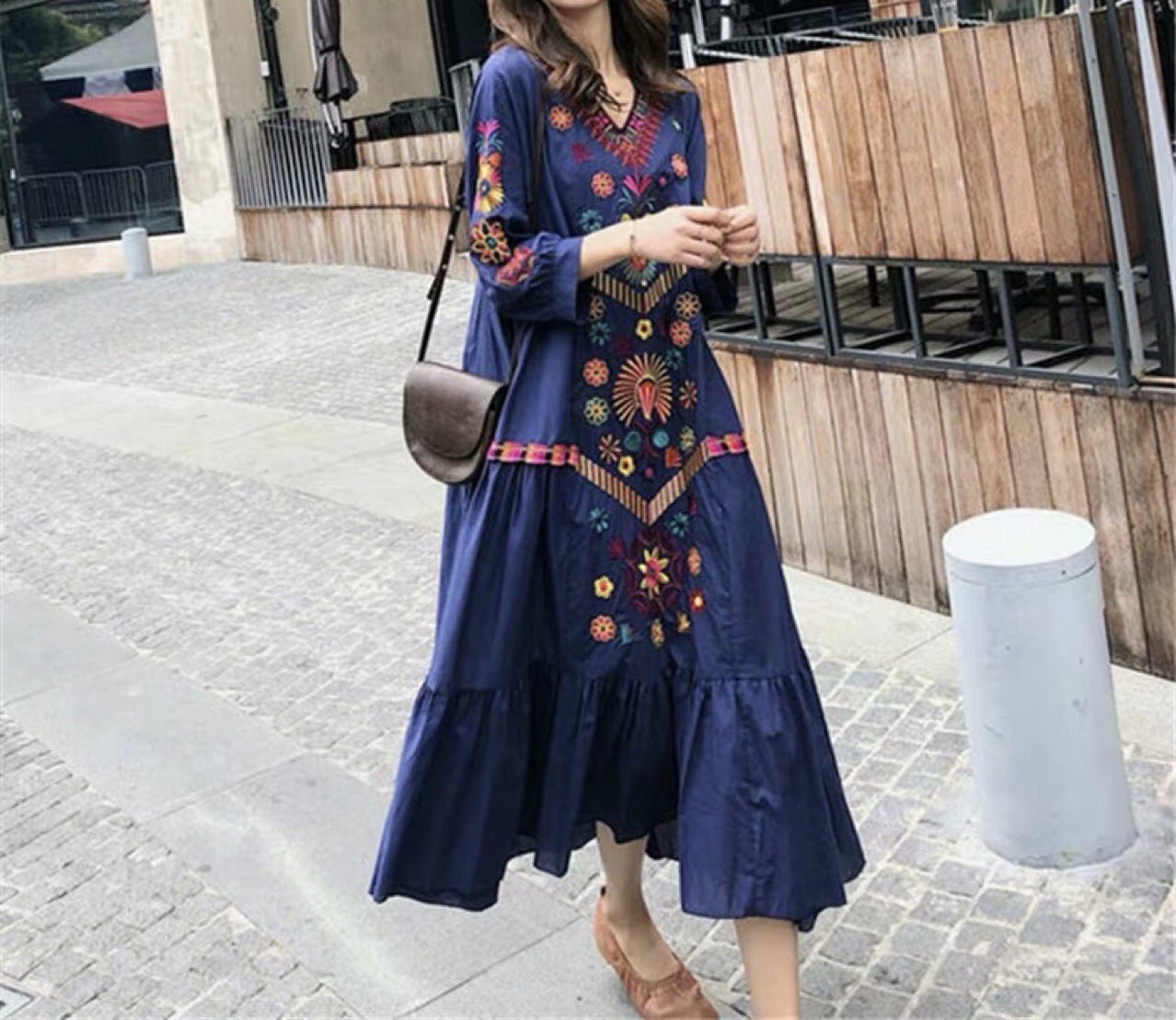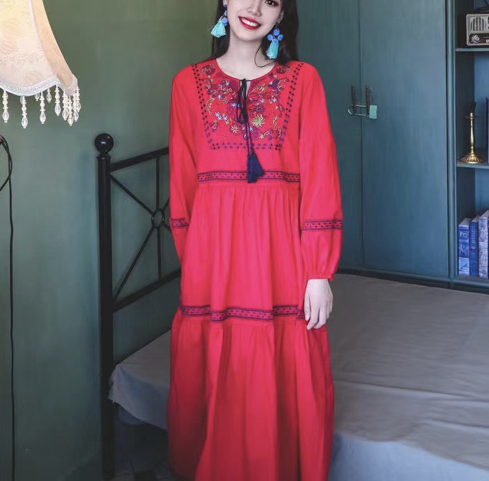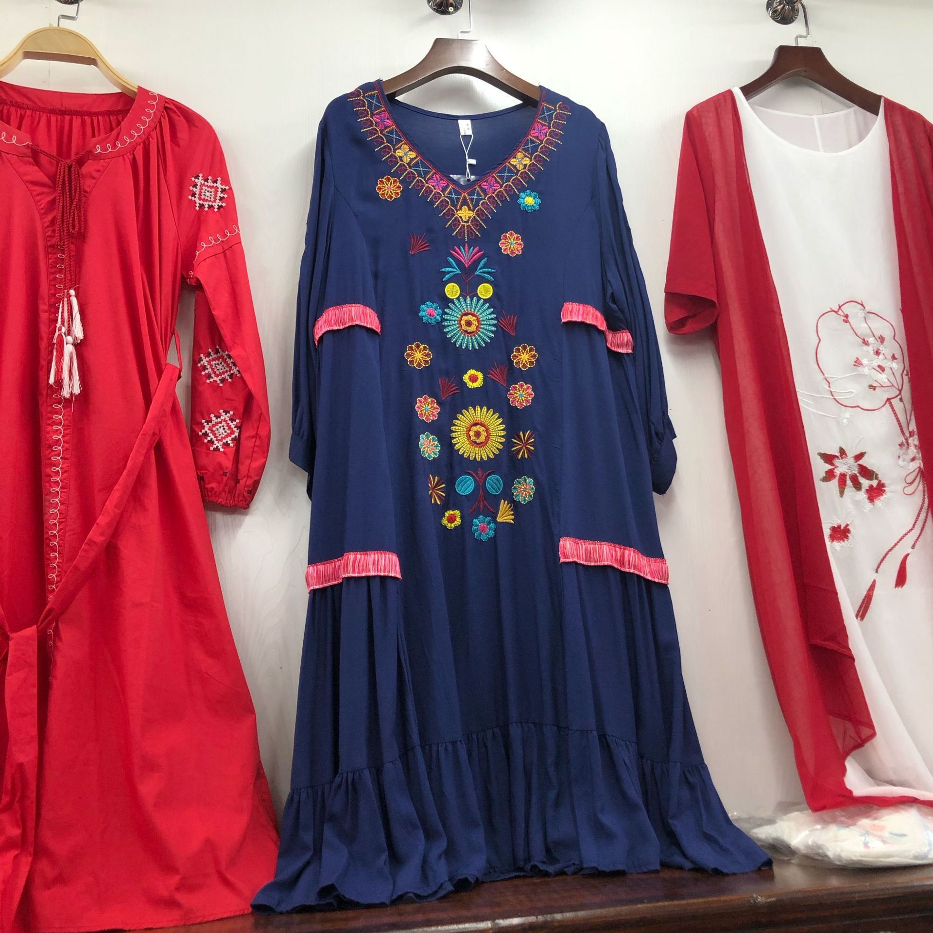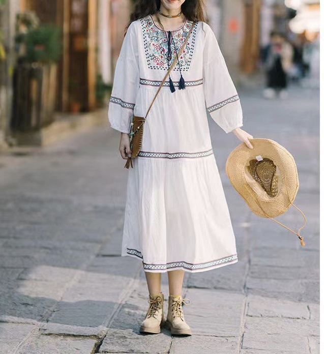 에스닉 스타일 원피스 2023 봄과 여름 새로운 크로스 보더 해외 무역 느슨한 에디션 여성용 자수 원피스 비치 원피스스토어 가기