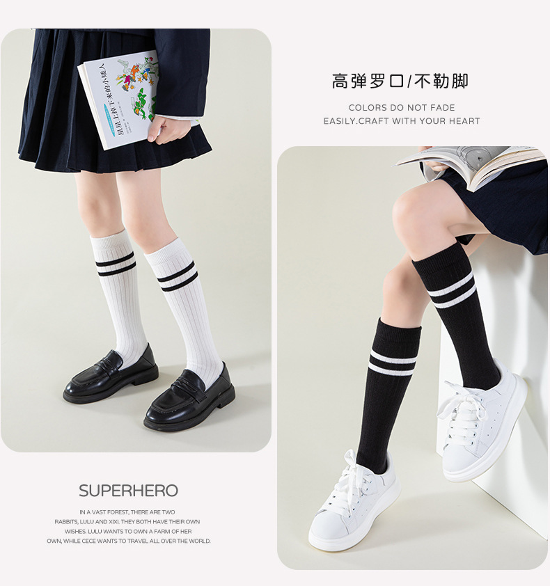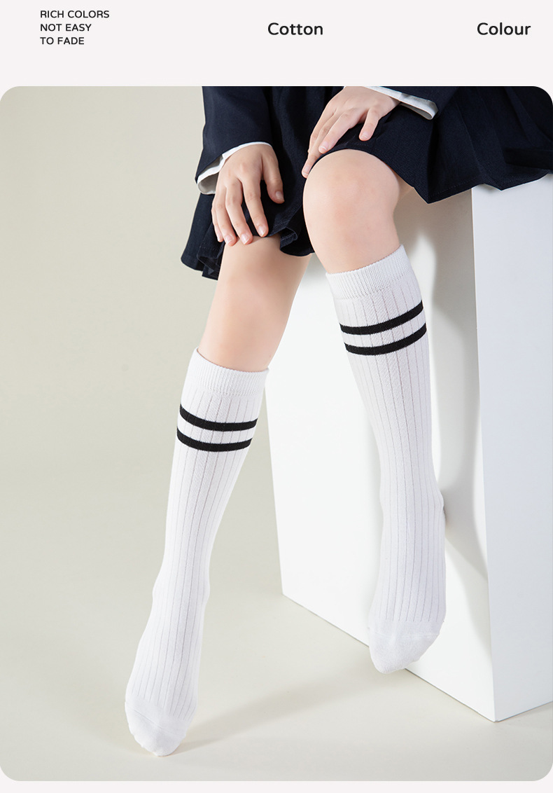 어린이 양말 송아지 소년과 소녀 긴 튜브 축구 양말 학생 높은 튜브 학술 흑백 필링면 양말은 발을 냄새 맡지 않습니다