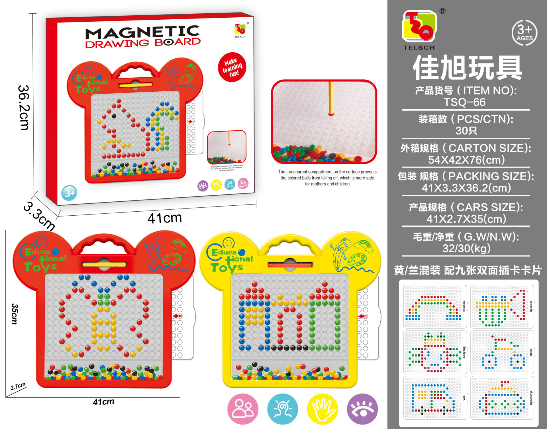 | TSQ-66(132珠) | 磁性绘画大板3 | 41*2.7*35 | 54*42*75 | 密封盒 | 31 | 29 | 30只 | 黄/红 混装(单笔)配9张侧面插卡.卡片 |