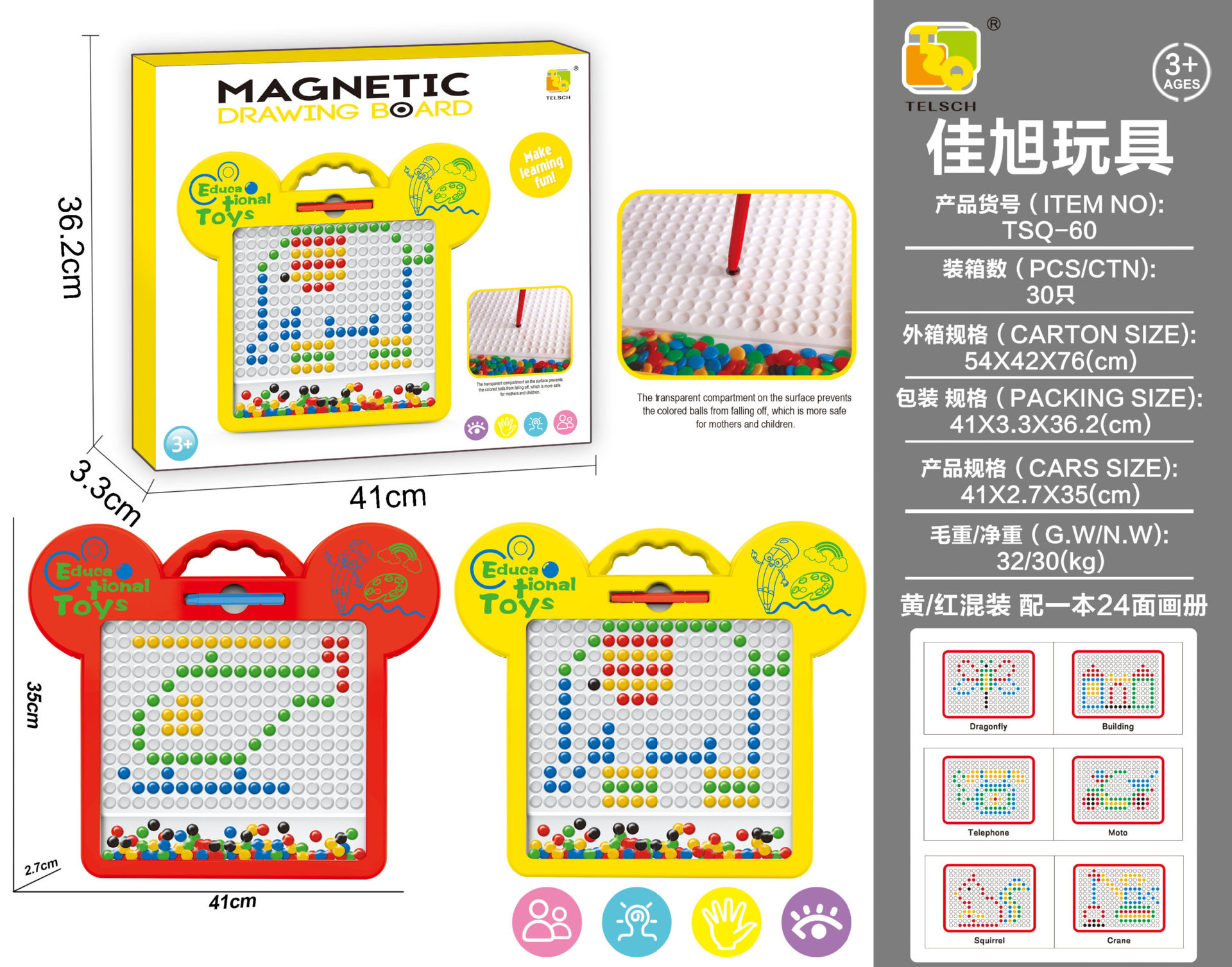 | TSQ-60(132珠) | 磁性绘画大板1 | 41*2.7*35 | 54*42*75 | 密封盒 | 31 | 29 | 30只 | 黄/红 混装(单笔)配1本画册 |