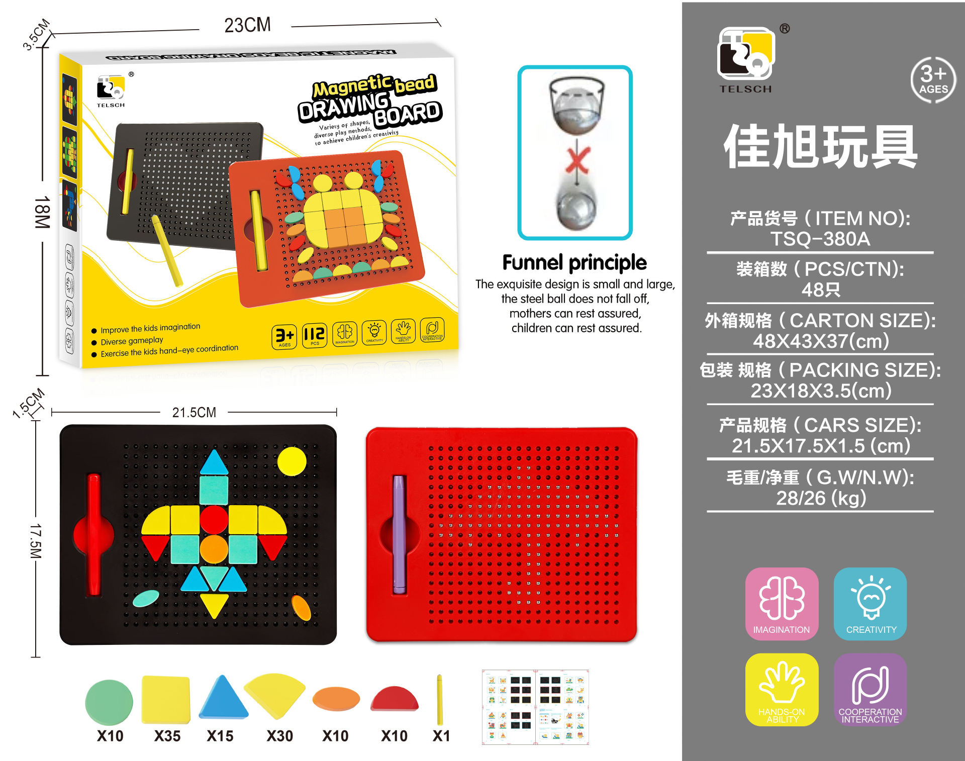 | TSQ-380A(380珠) | 磁性小画板+DIY | 21.5*17.5 | 48*46*38 | 密封盒 | 28 | 26 | 48只 | 黑/红 混装(单笔)配1本画册+110小颗粒 |