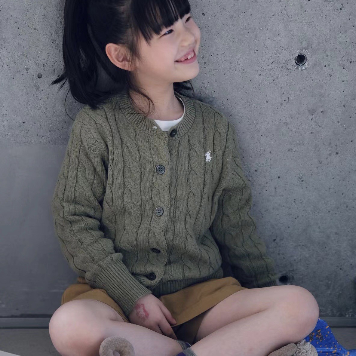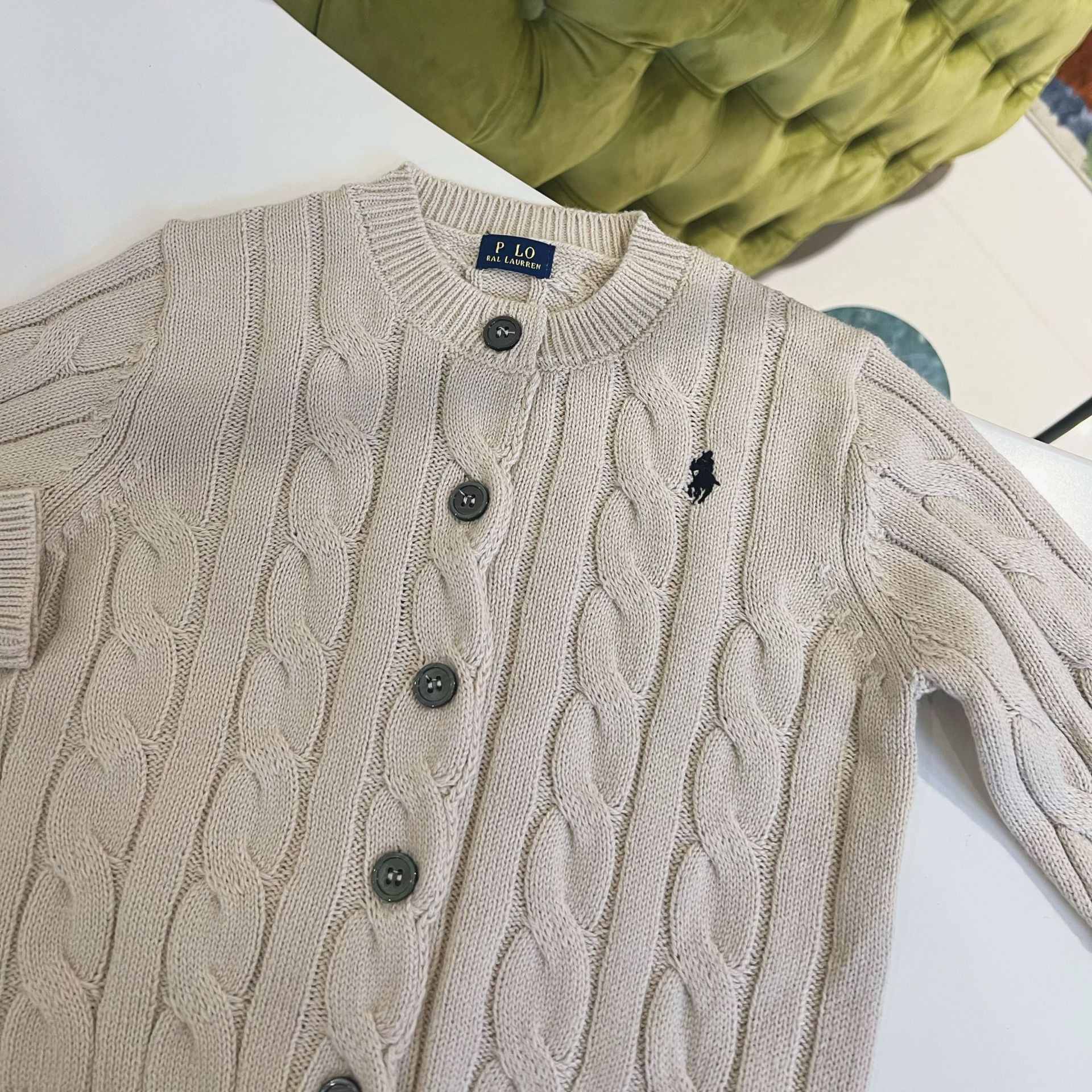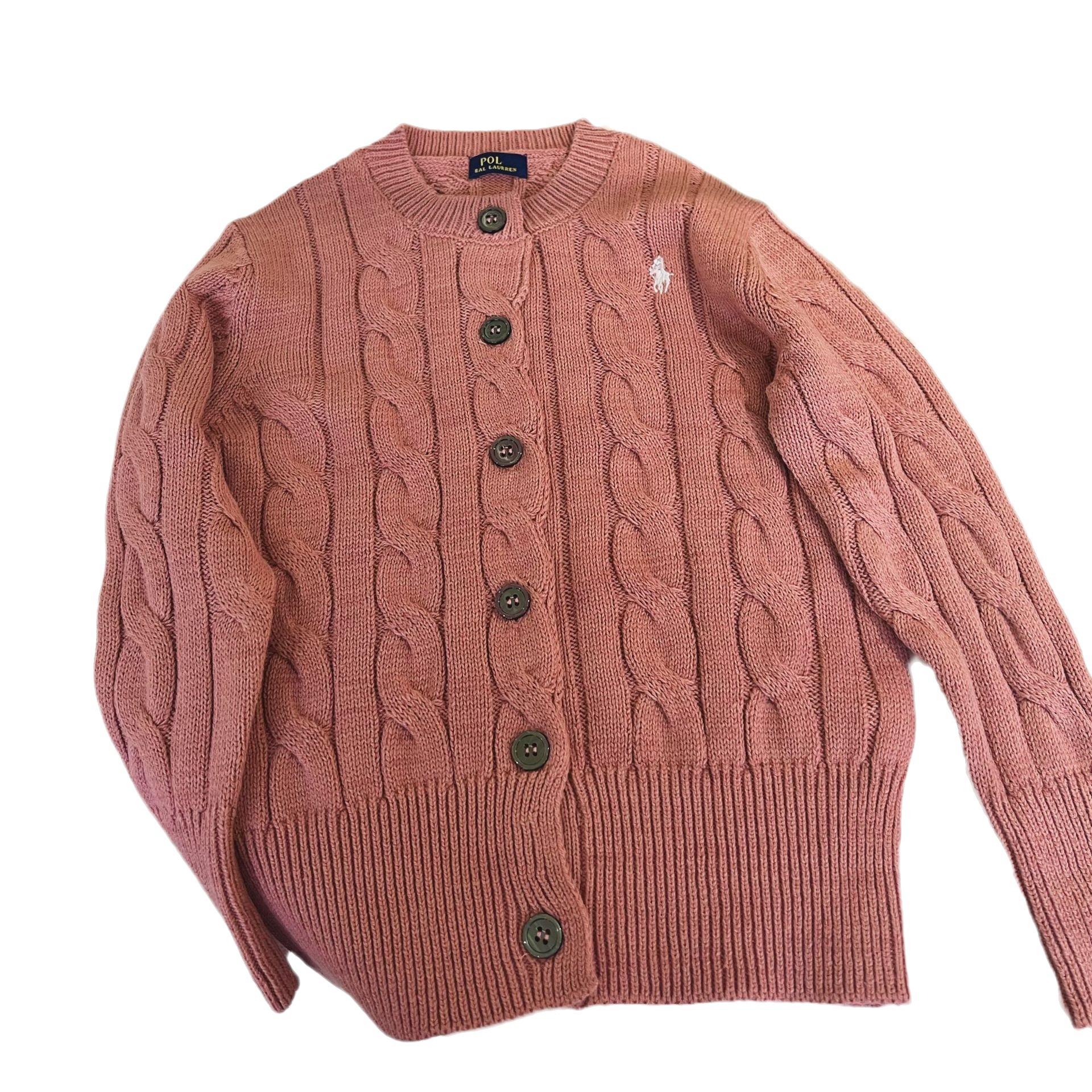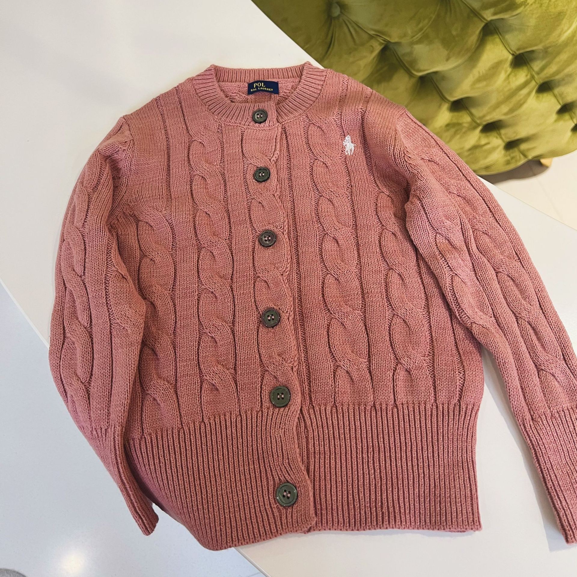 23SS 소년 소녀 아메리칸 레트로 RL 브레스트 트위스트 니트 가디건 긴팔 재킷 부모-자식 스타일 재고 있음