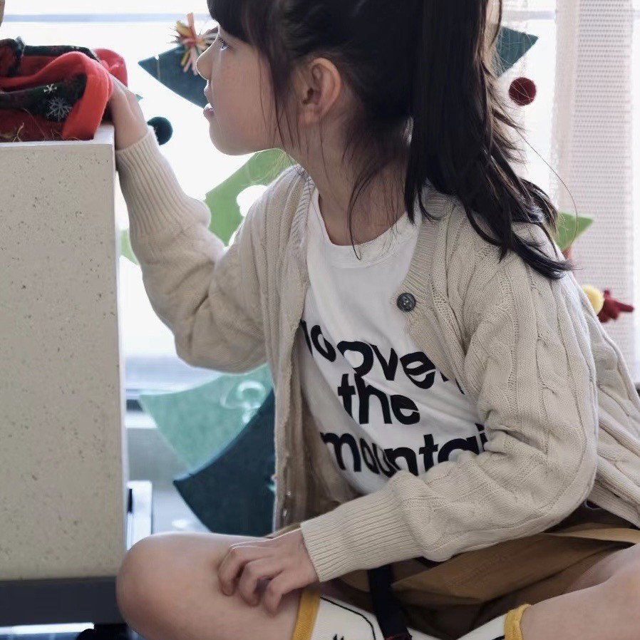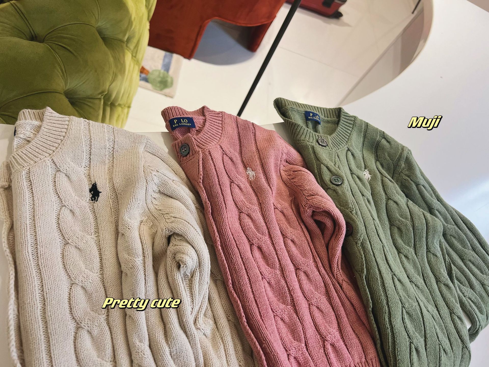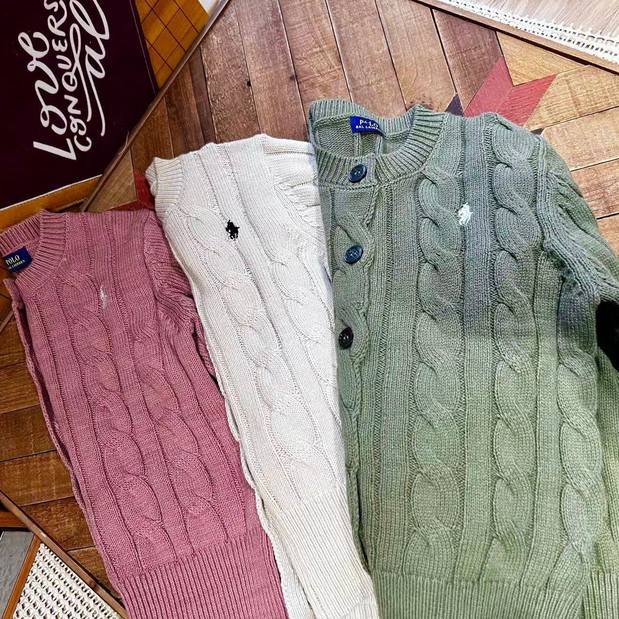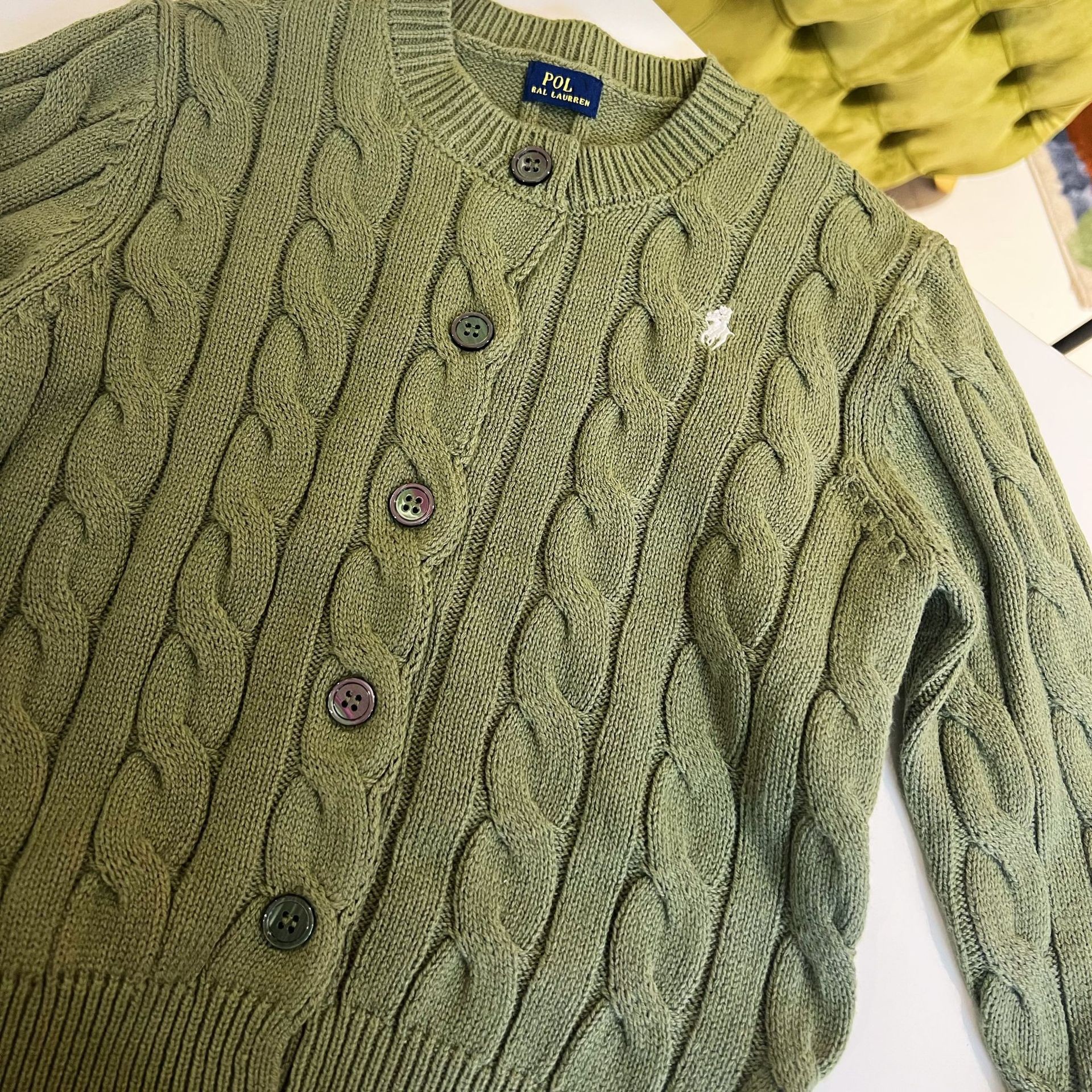 23SS 소년 소녀 아메리칸 레트로 RL 브레스트 트위스트 니트 가디건 긴팔 재킷 부모-자식 스타일 재고 있음