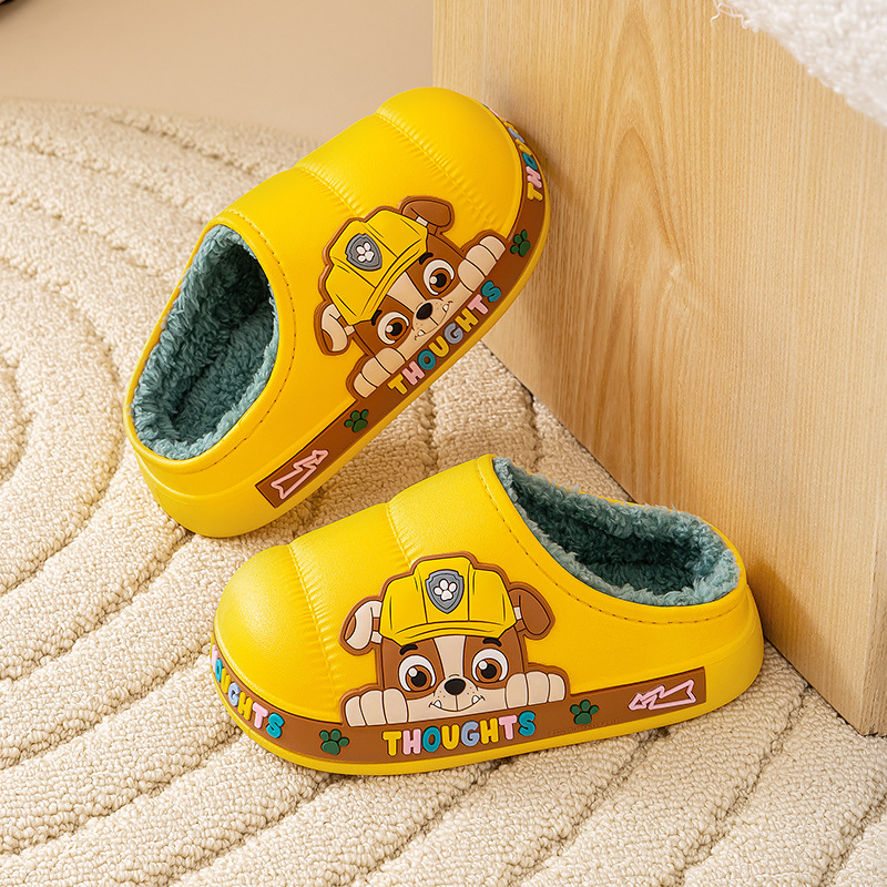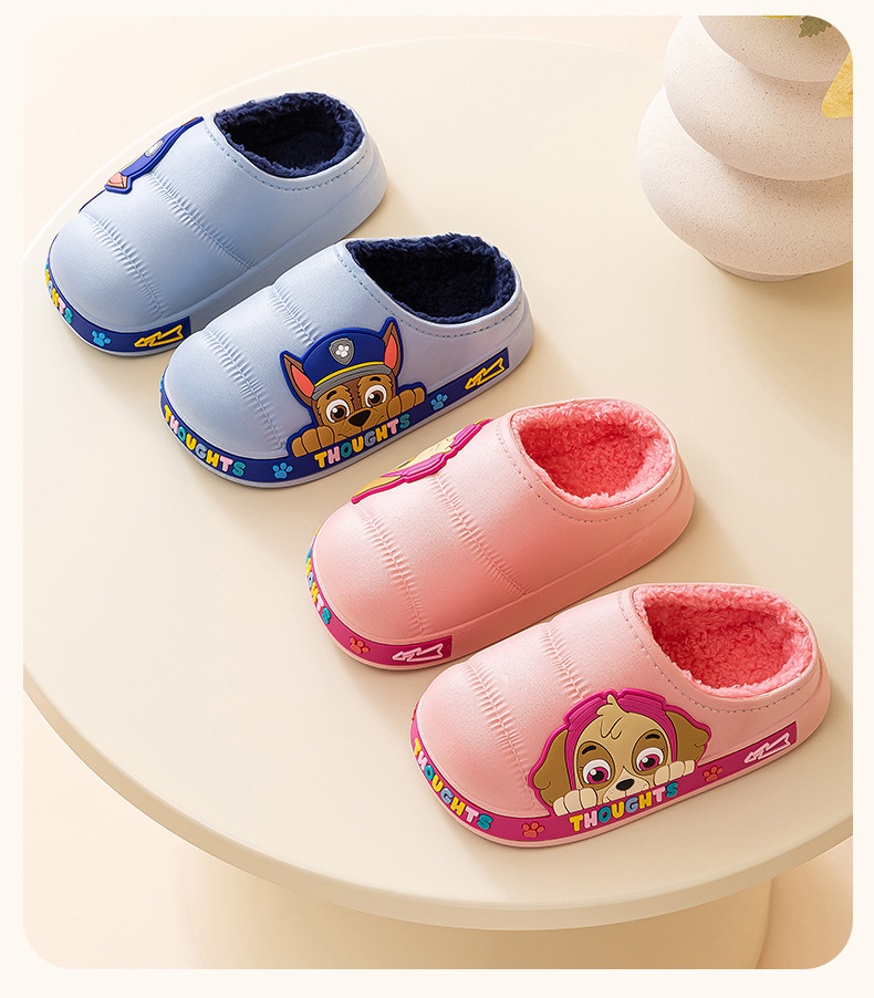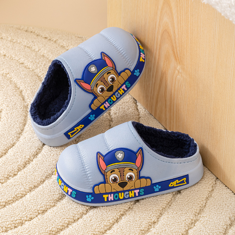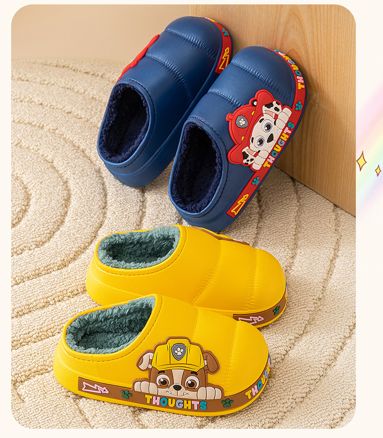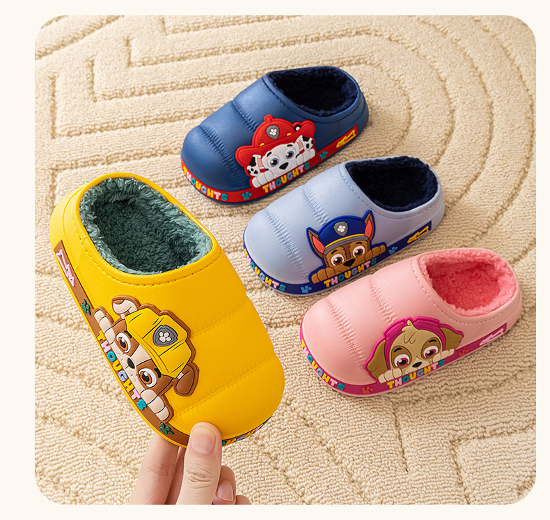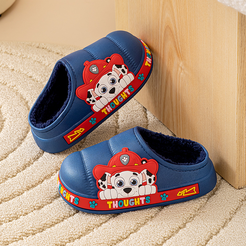 왕 왕 팀 어린이 면 슬리퍼 소년 미끄럼 방지 홈 실내 면 슬리퍼 소녀 어린이 아기 방수 푹신한 슬리퍼