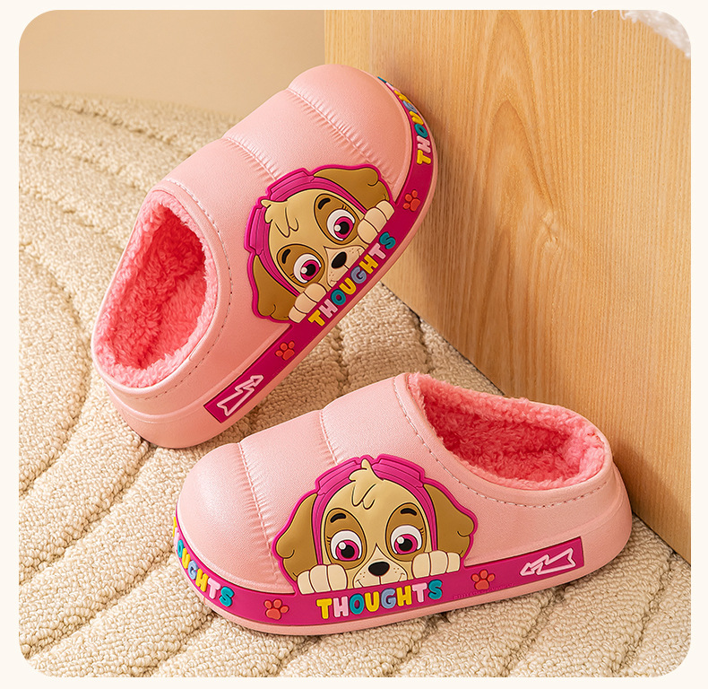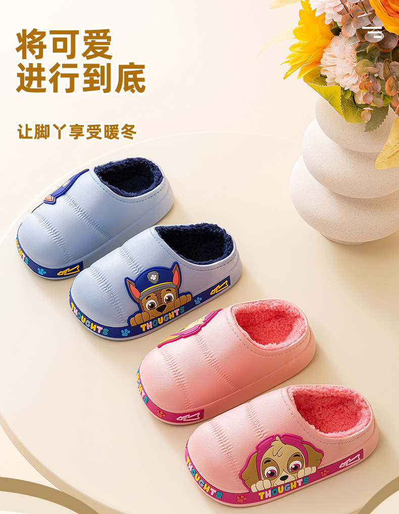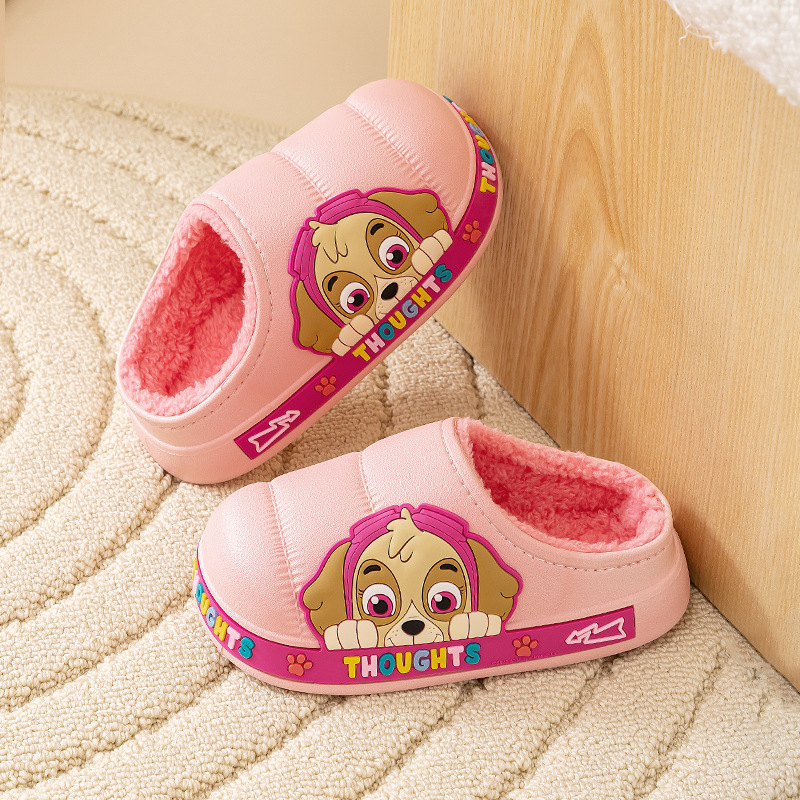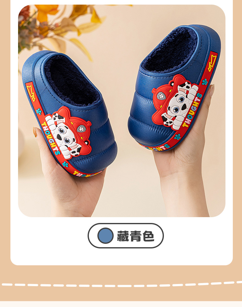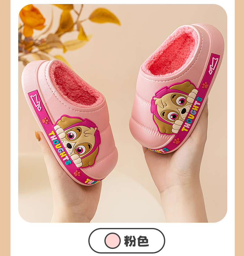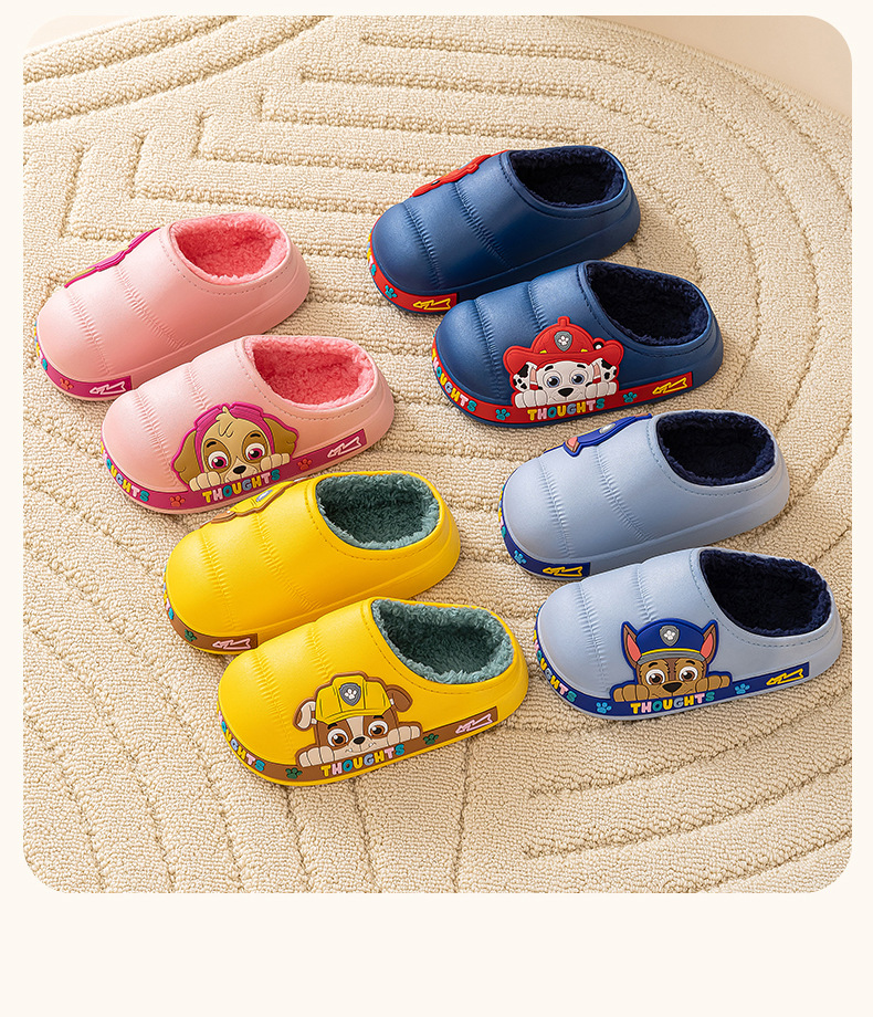 왕 왕 팀 어린이 면 슬리퍼 소년 미끄럼 방지 홈 실내 면 슬리퍼 소녀 어린이 아기 방수 푹신한 슬리퍼