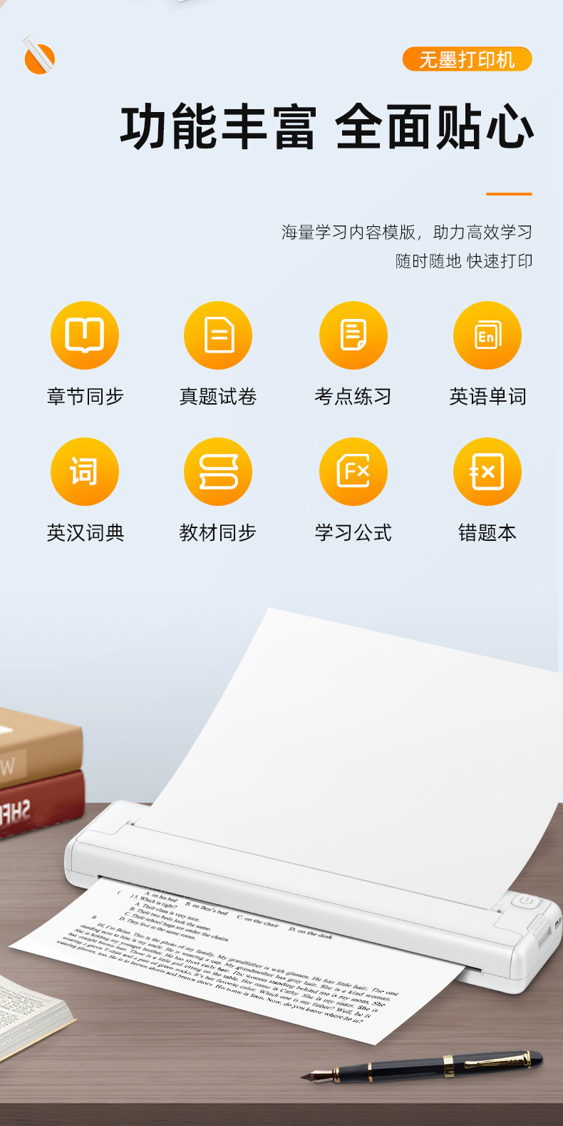 A4 잉크가없는 잘못된 타이틀 프린터 소형 라벨 기계 사진 블루투스 열 휴대용 포켓 미니 프린터