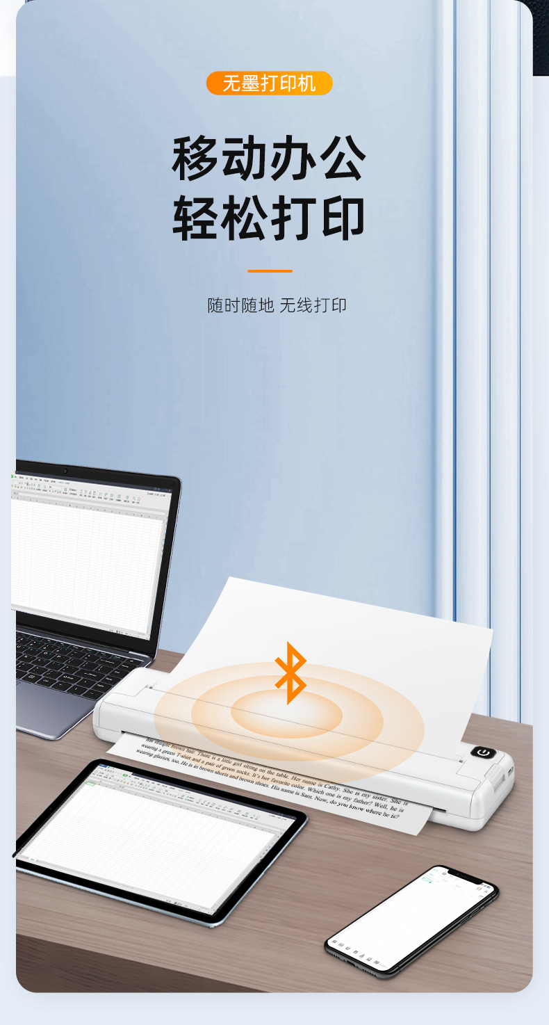 A4 잉크가없는 잘못된 타이틀 프린터 소형 라벨 기계 사진 블루투스 열 휴대용 포켓 미니 프린터스토어 가기