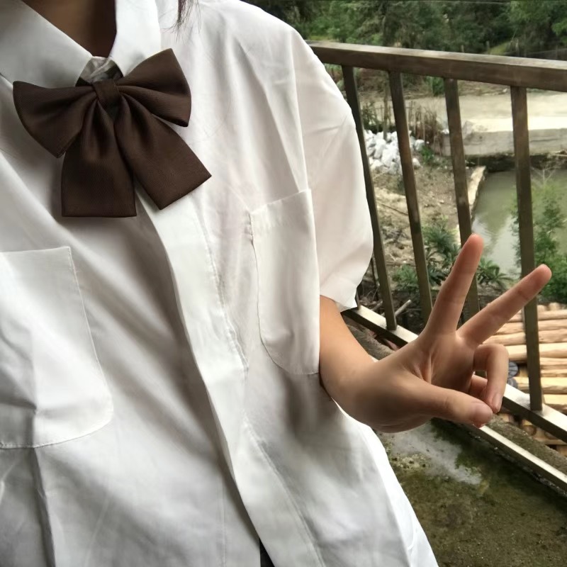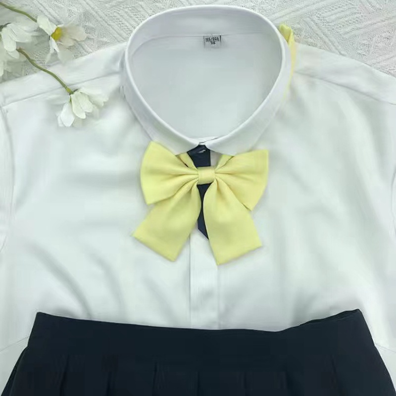 JK 단색 칼라 꽃 일본 학생 셔츠 대학 스타일 활 캔디 컬러 플랫 혼 학자 의류 액세서리 깃털스토어 가기