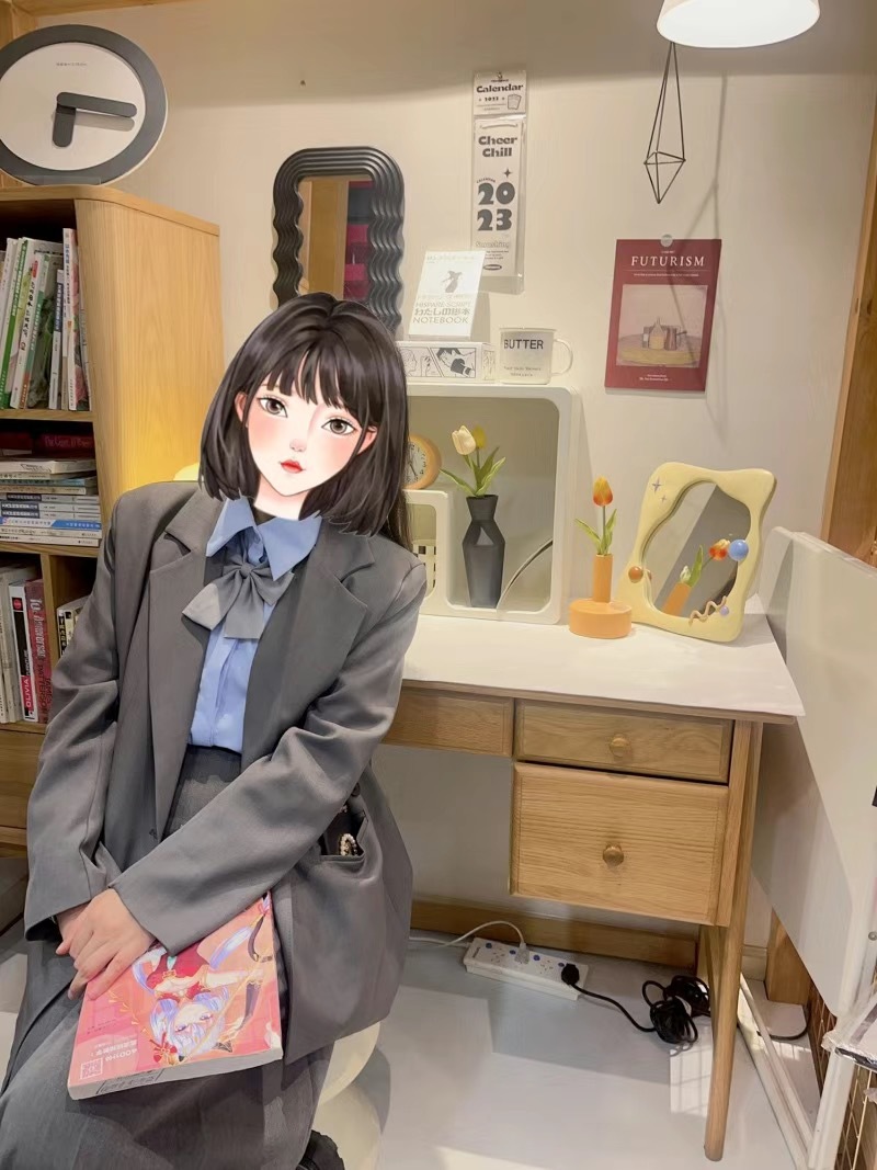 JK 단색 칼라 꽃 일본 학생 셔츠 대학 스타일 활 캔디 컬러 플랫 혼 학자 의류 액세서리 깃털