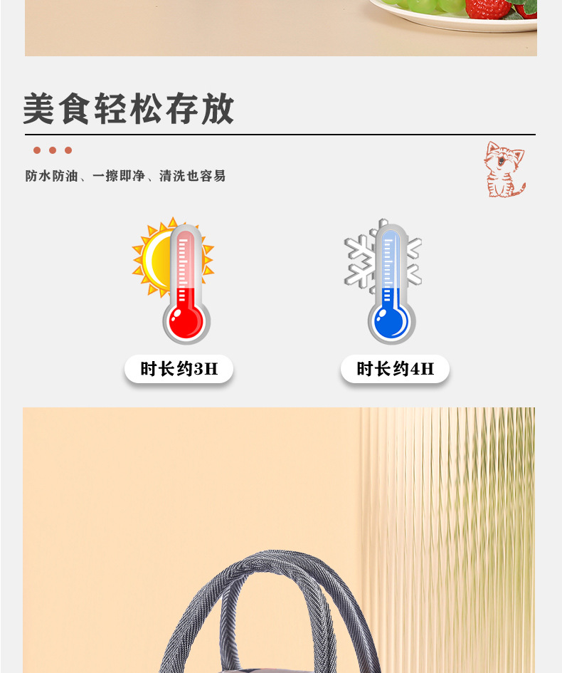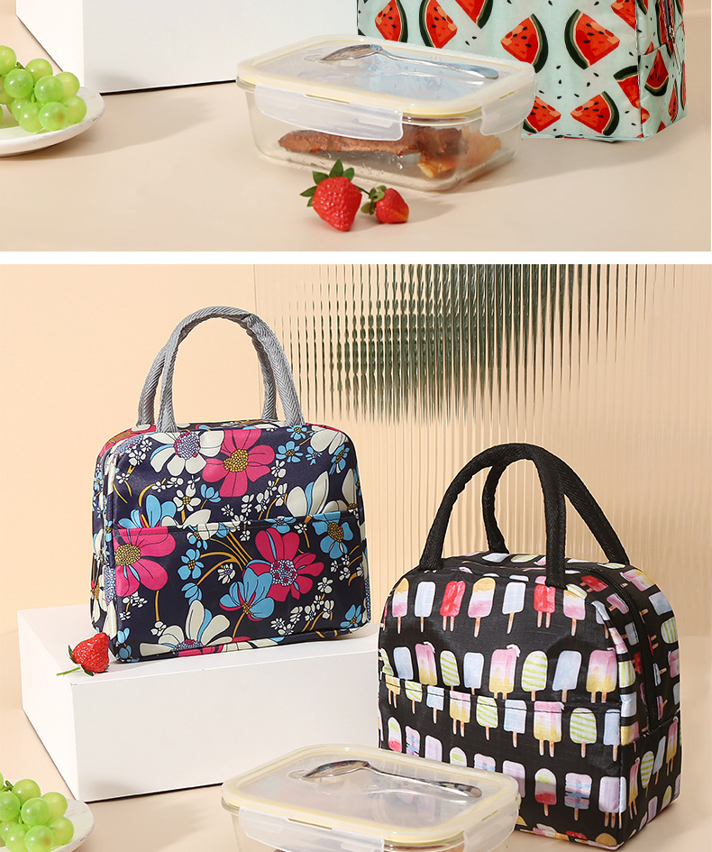 큰 수용량 한국 작은 신선한 인쇄 절연 가방 아이스 백 인쇄 점심 가방 휴대용 휴대용 점심 가방 재고스토어 가기