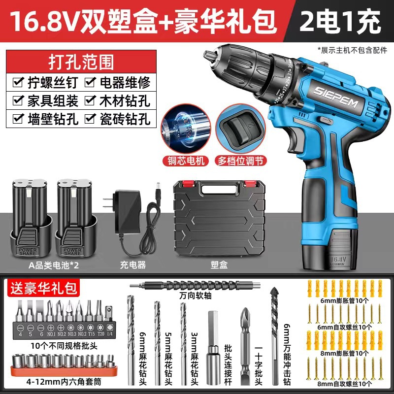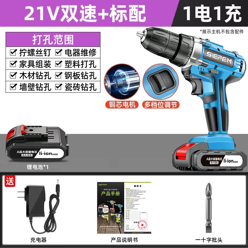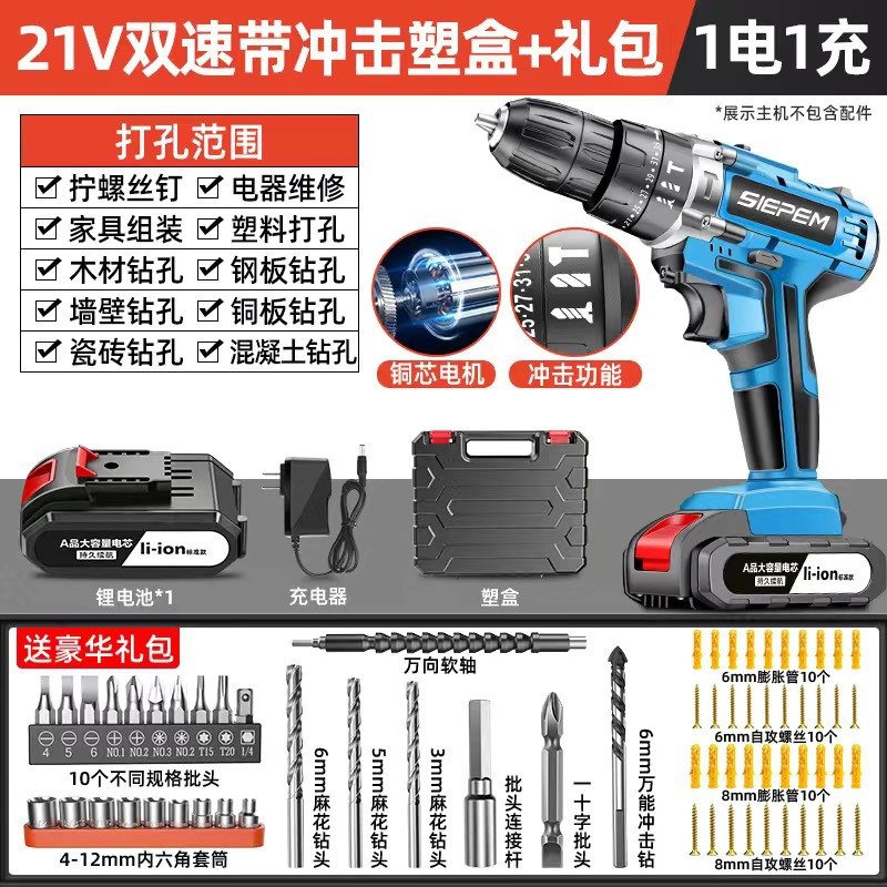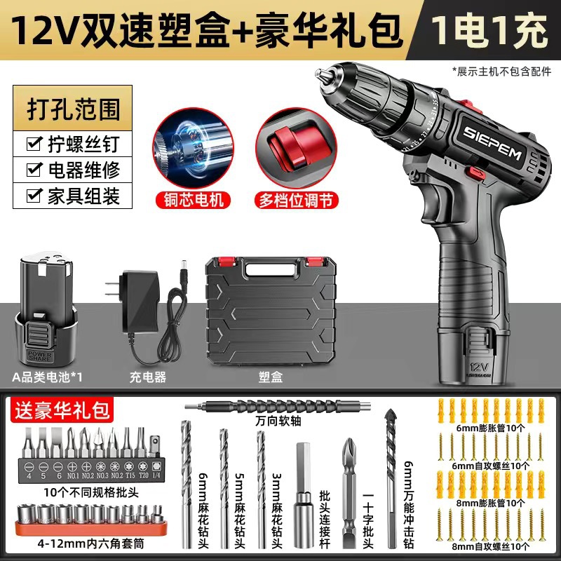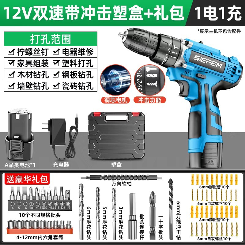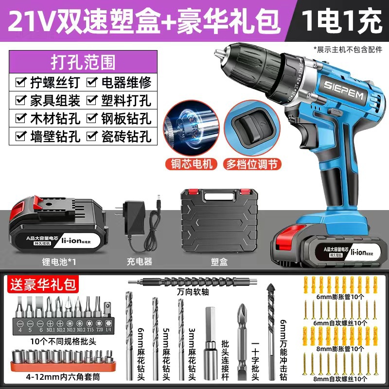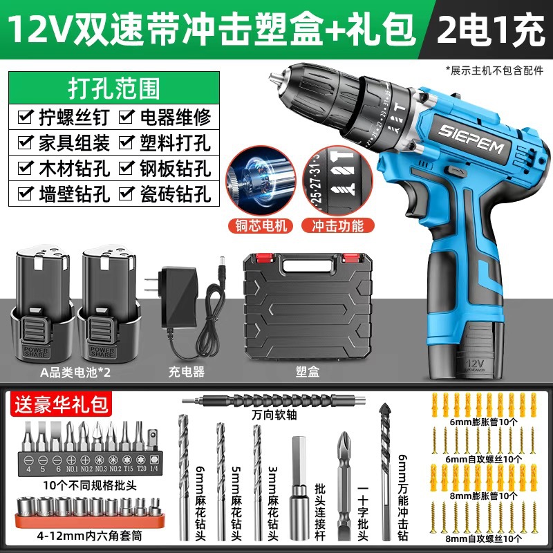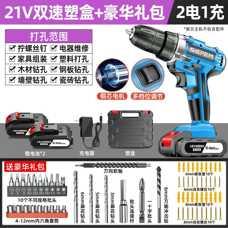 고출력 가정용 충전식 전동 드릴 도구 전동 드라이버 다기능 충격 리튬 전지 신형 핸드 드릴스토어 가기