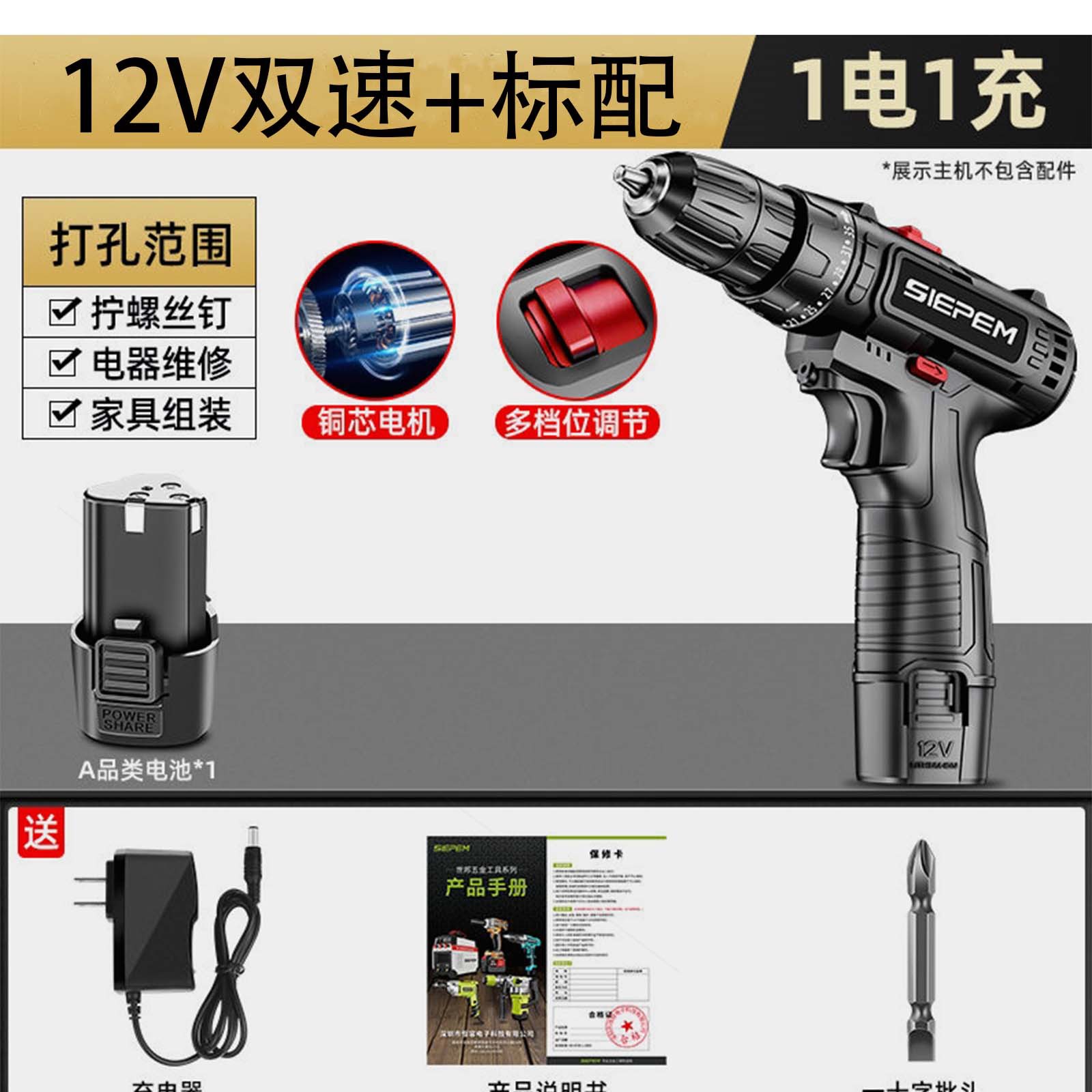 • 12v 듀얼 속도 높은 구성 1 전원 1 충전 표준 구성