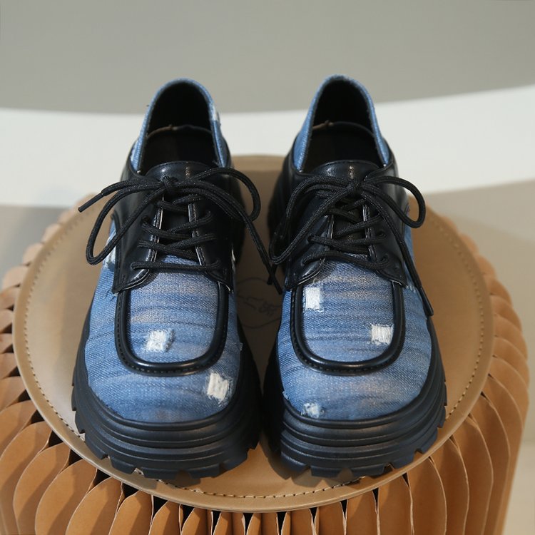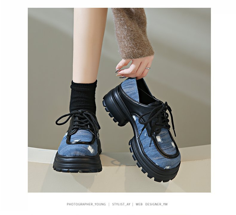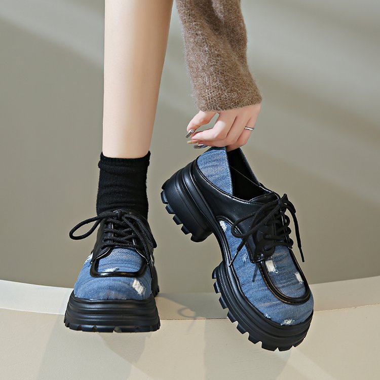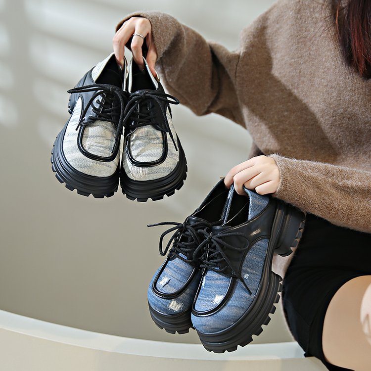 Mary Jane 캐주얼 신발 여성용 2023 가을과 겨울 새로운 패션 데님 여성용 투웨어 레이스업 트렌디 로퍼스토어 가기
