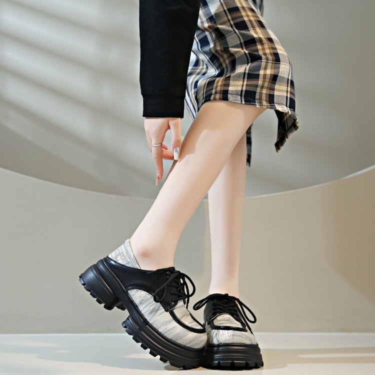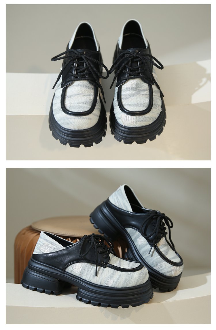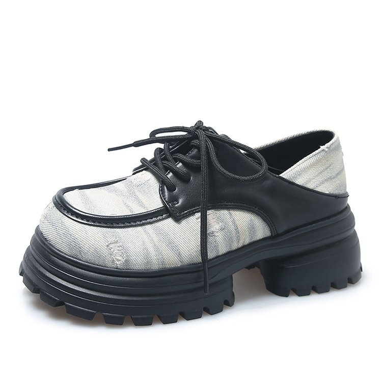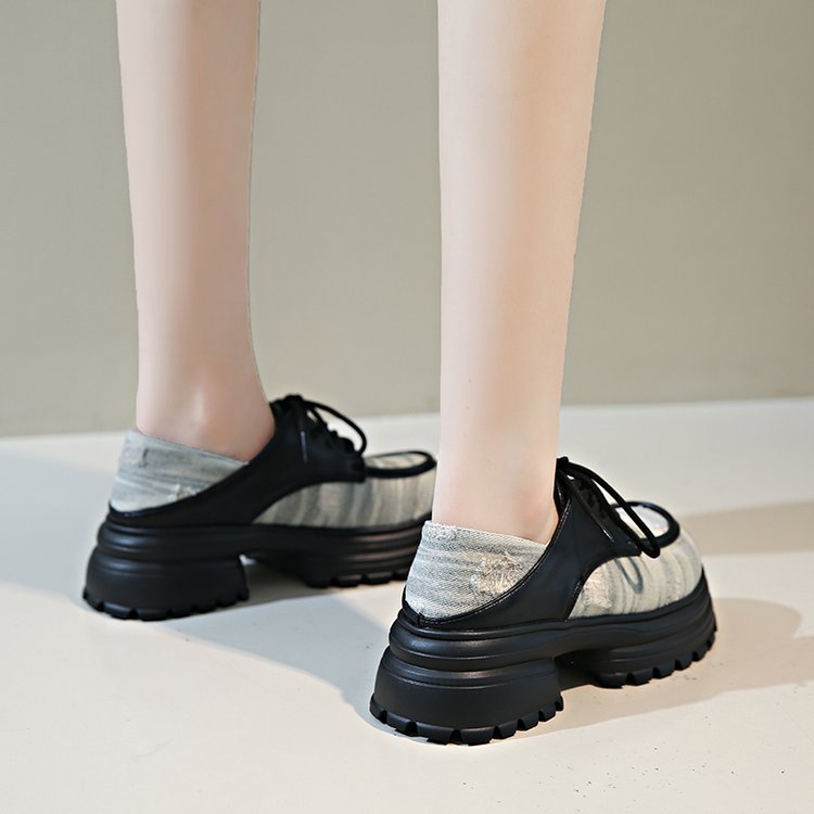 Mary Jane 캐주얼 신발 여성용 2023 가을과 겨울 새로운 패션 데님 여성용 투웨어 레이스업 트렌디 로퍼