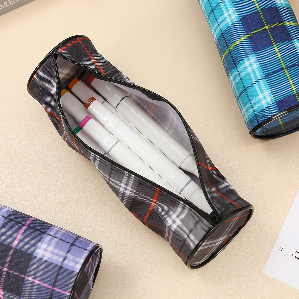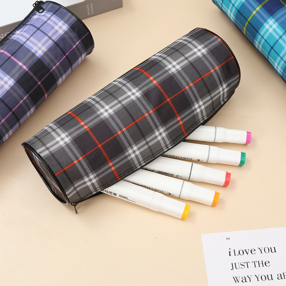 패션 캐주얼 격자 무늬 연필 케이스 학생 문구 가방 사무실 용품 대용량 연필 보관 가방 제조 업체 도매스토어 가기