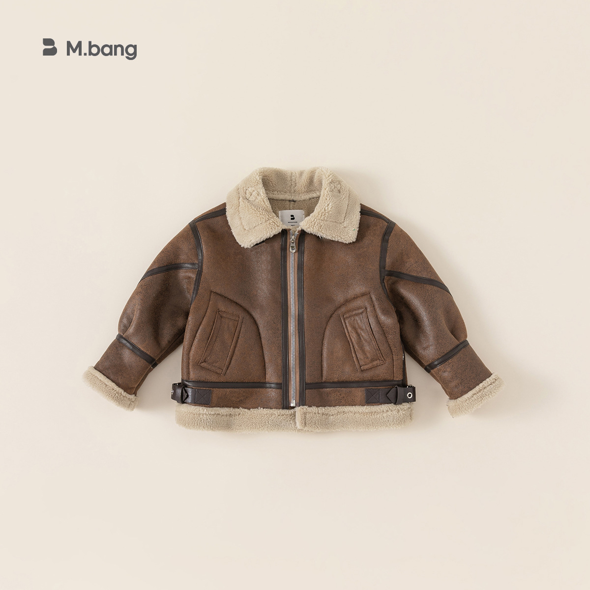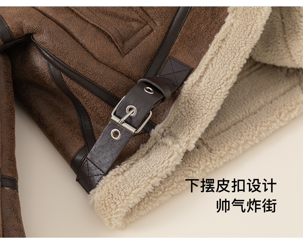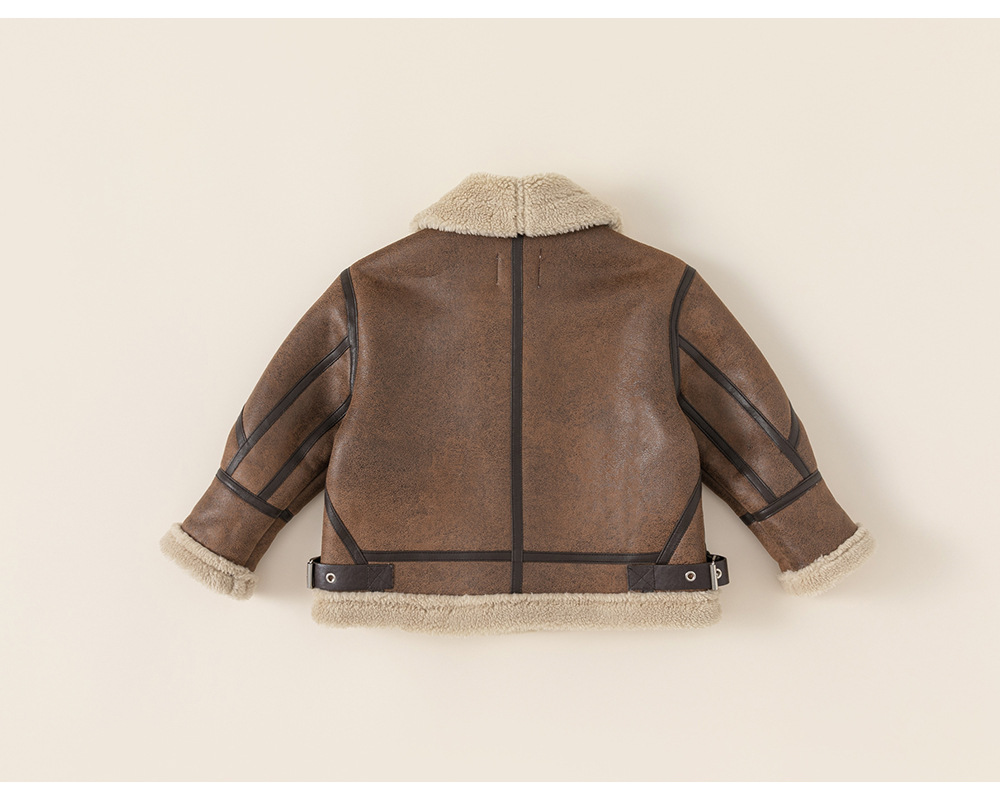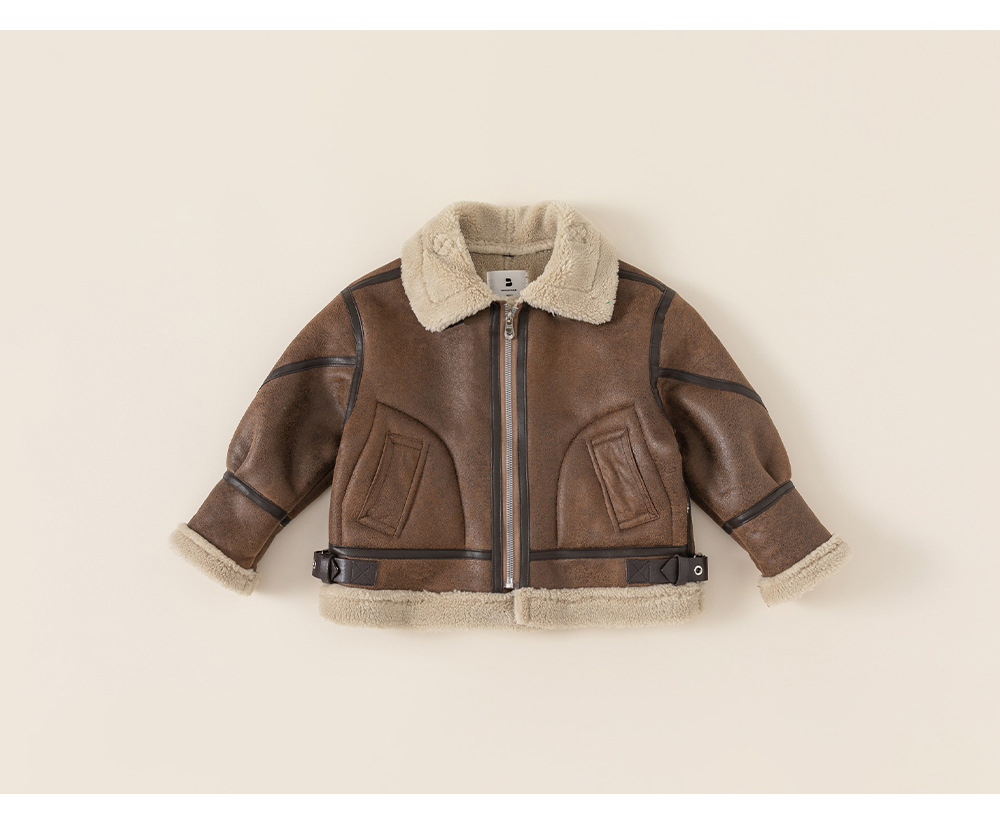 방선택 아동복 겨울 신상품 아동용 두꺼운 재킷 한국 스타일 방풍 야외 여아용 스웨이드 탑 바이커 재킷