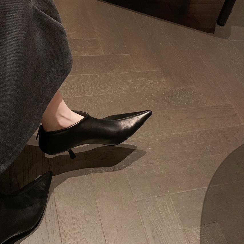 양모 버전 ~ 프랑스 뾰족한 발가락 새끼 고양이 우아한 발목 부츠 여성 가을 싱글 부츠 정품 가죽 하이힐 양말 부츠 얇은 부츠스토어 가기