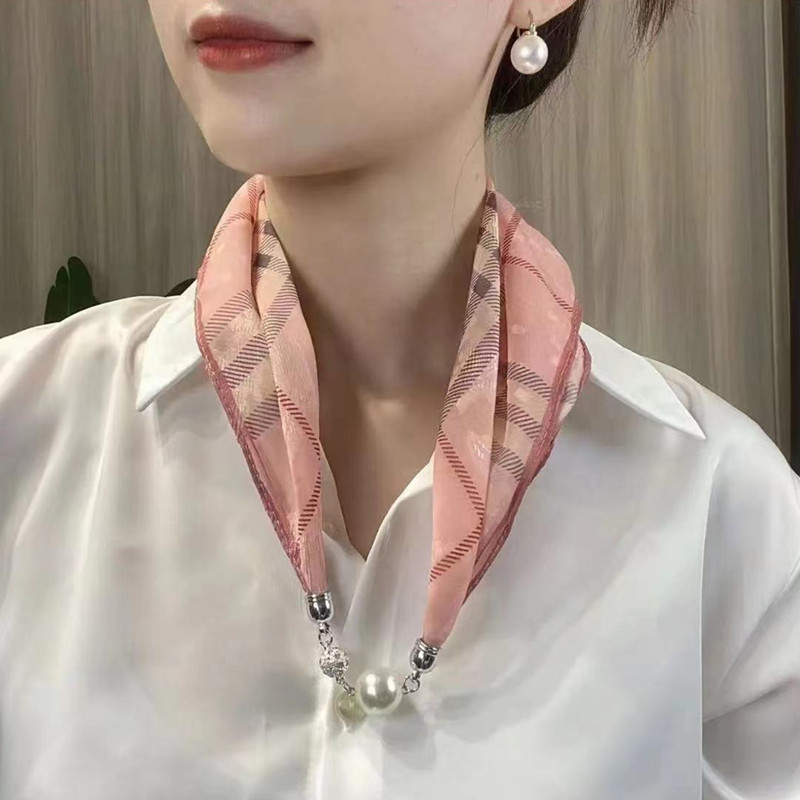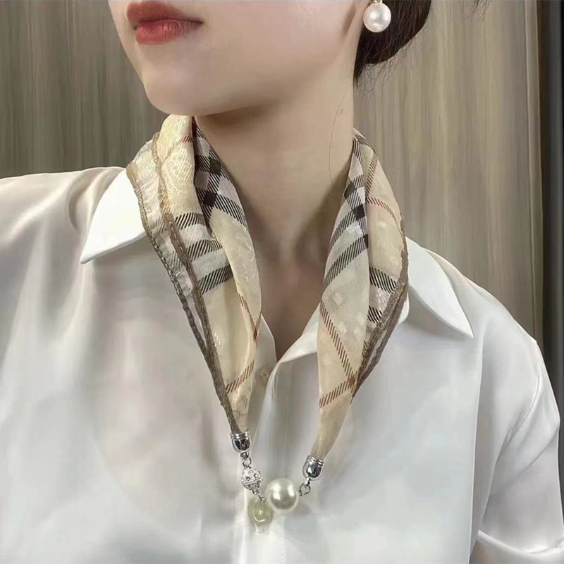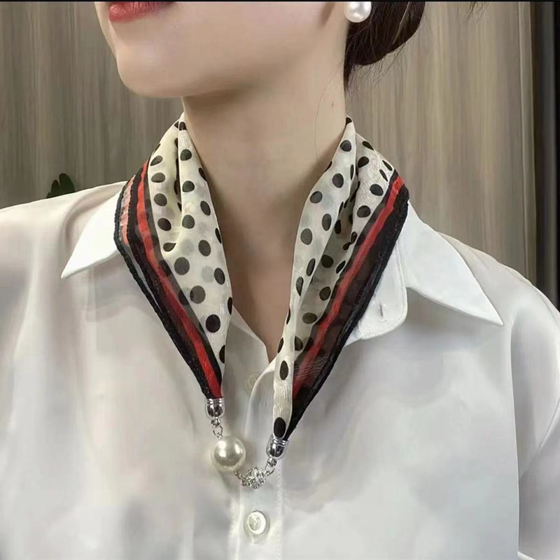 새로운 패션 서양식 올 매치 마그네틱 버클 진주 목걸이 작은 스카프 여성의 고급 매칭 셔츠 게으른 스카프