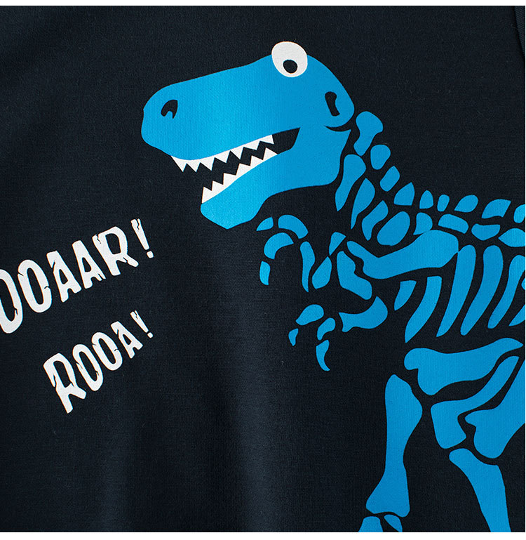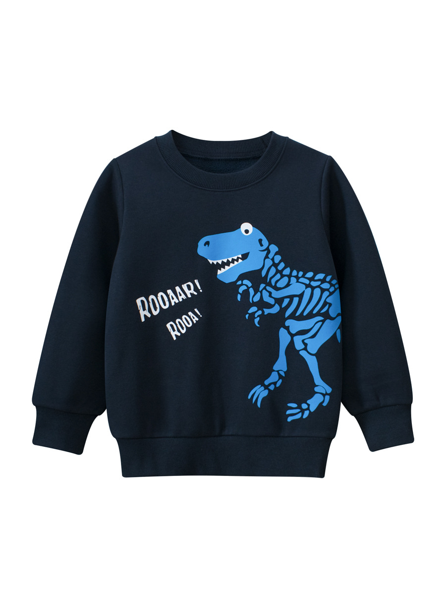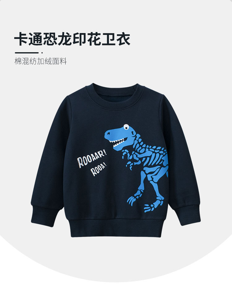 27kids 한국판 아동복 가을 겨울 신상 2024 공룡 만화 아동용 스웨트셔츠 플리스 안감 유아복 도매스토어 가기