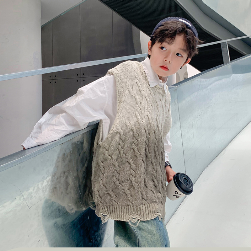 그라데이션 아동용 스웨터 조끼 봄 가을 신상품 2025 남아용 니트 조끼 중대형 아동용 니트 조끼 외출용스토어 가기