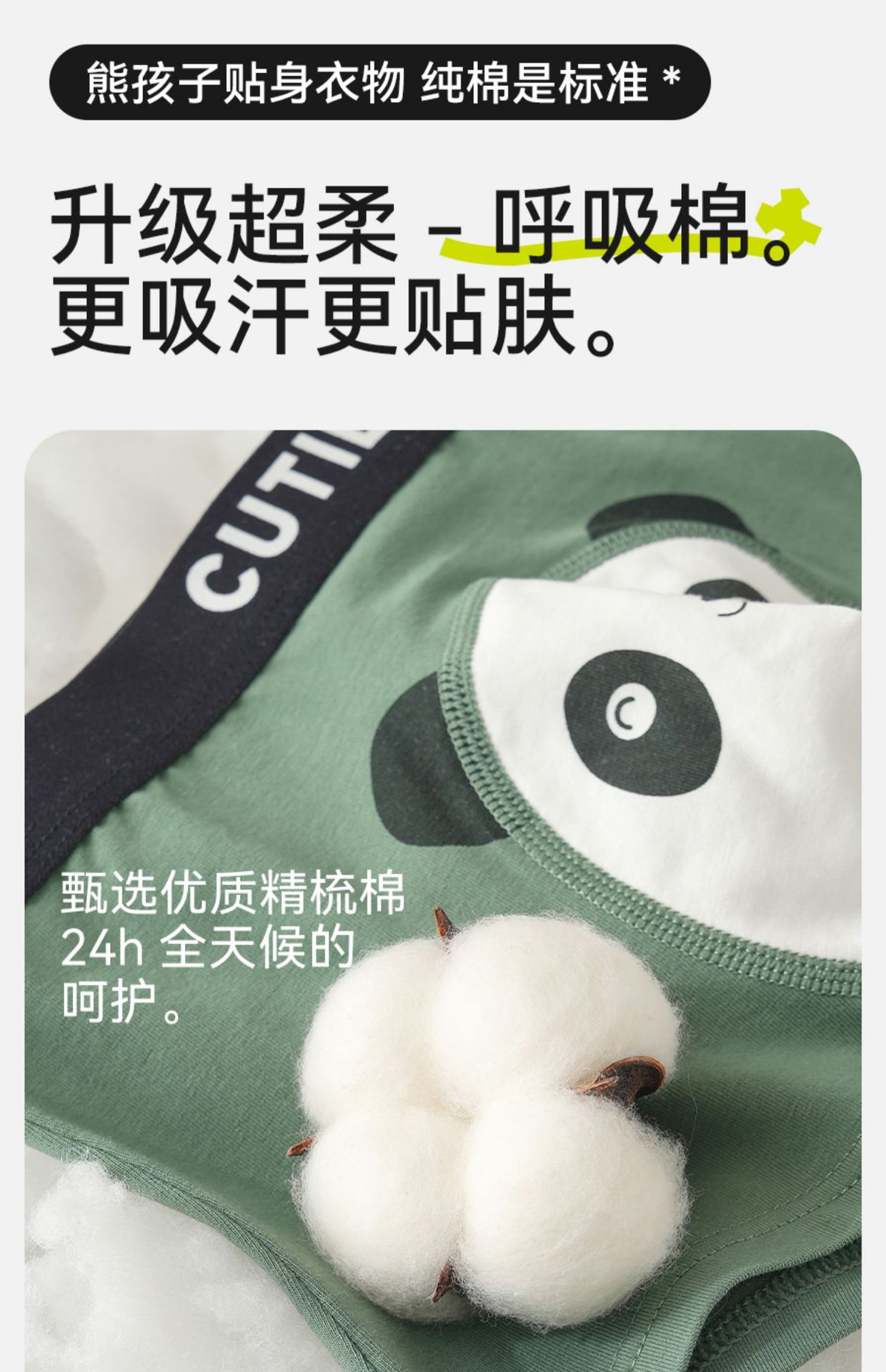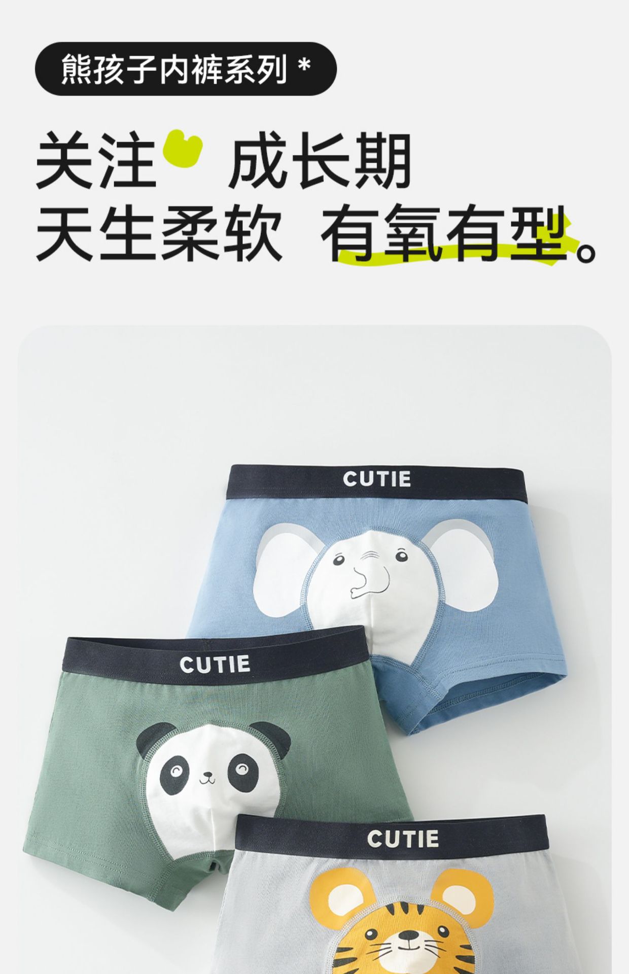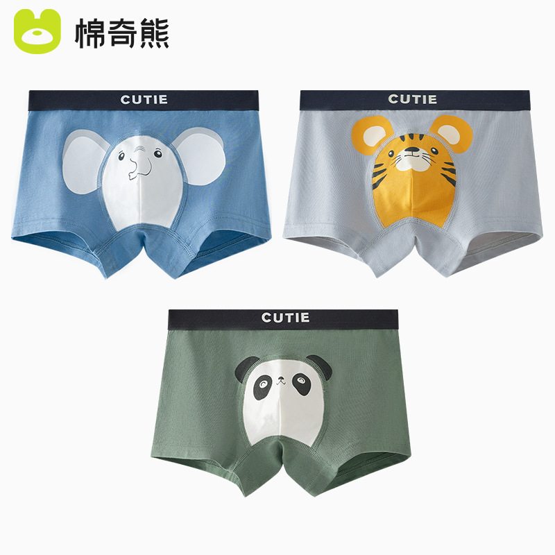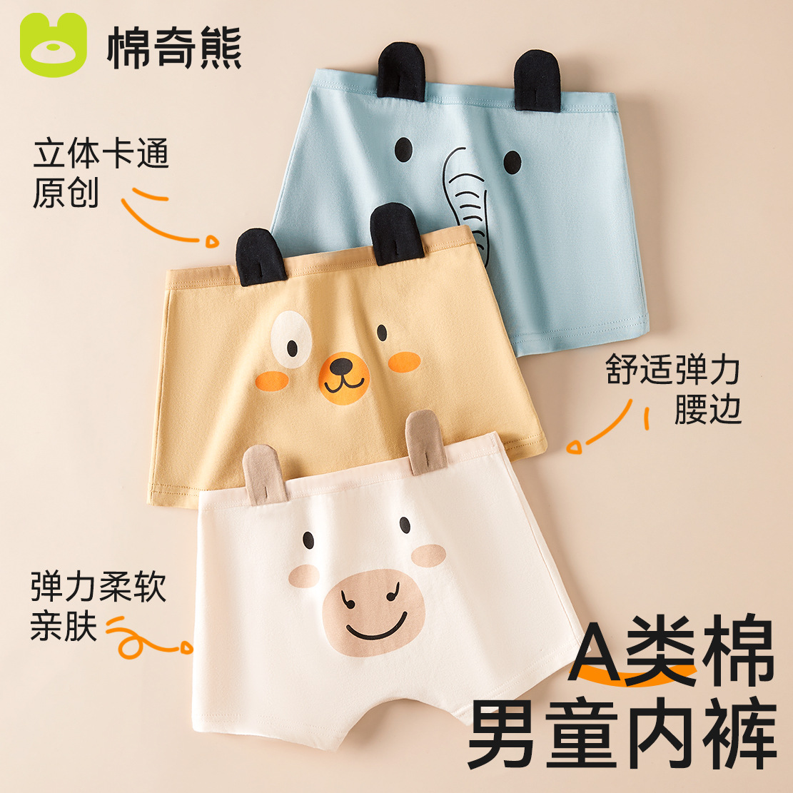 Mianqi 곰 소년 속옷 어린이 순면 복서 반바지 성장 시즌 가을 소년 복서 바지 큰 어린이는 방귀하지 않습니다스토어 가기