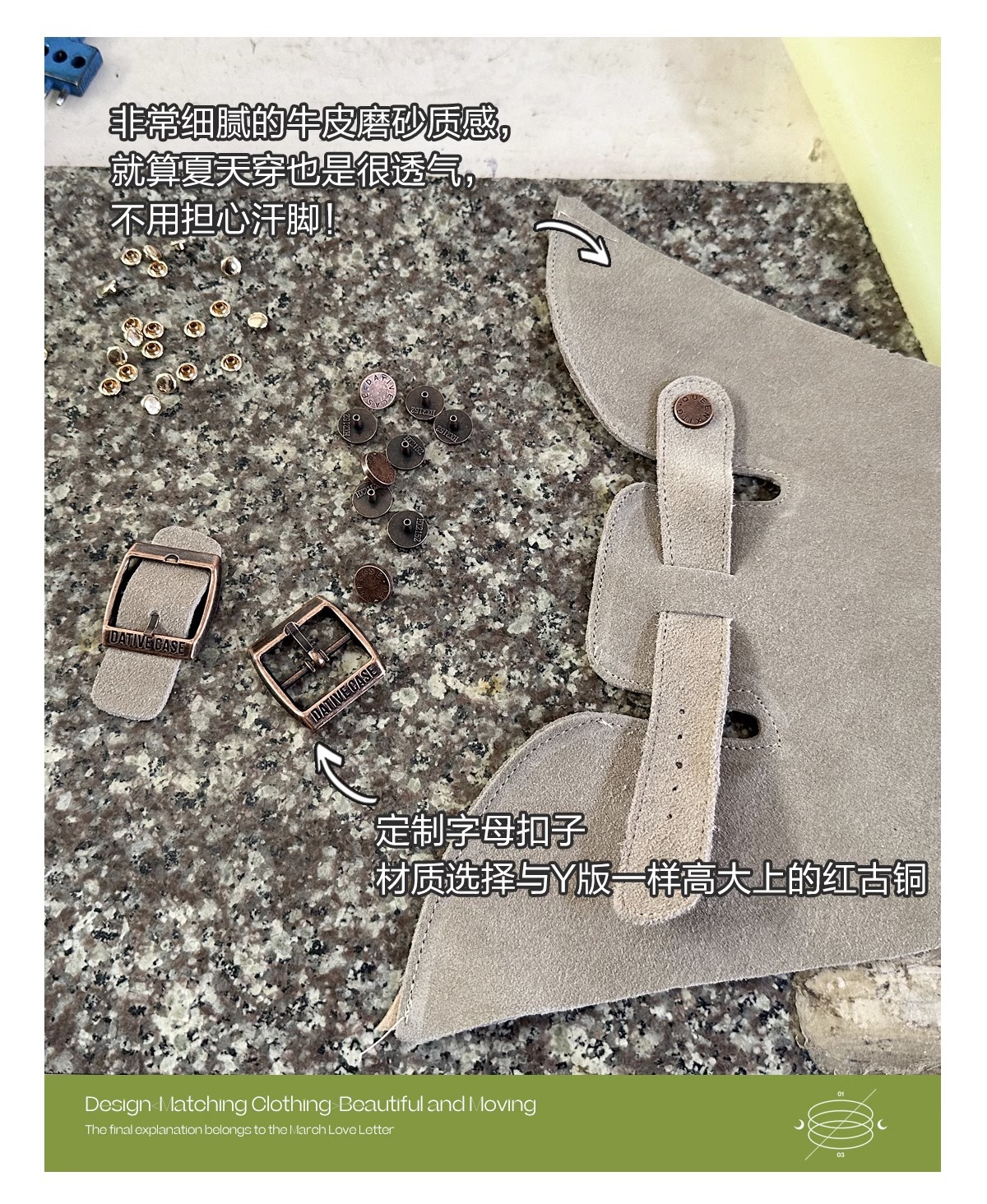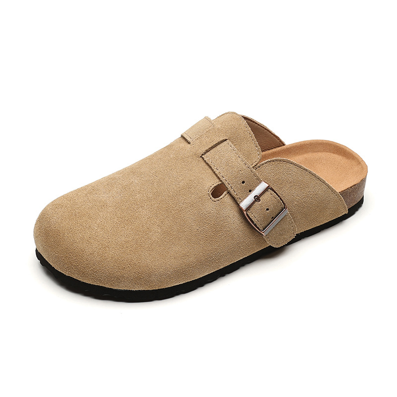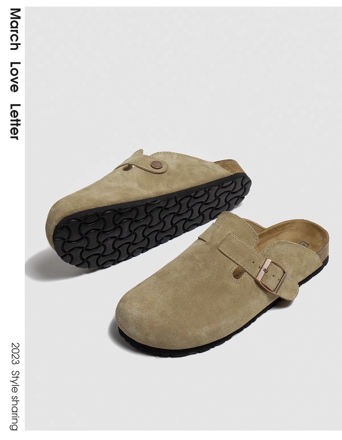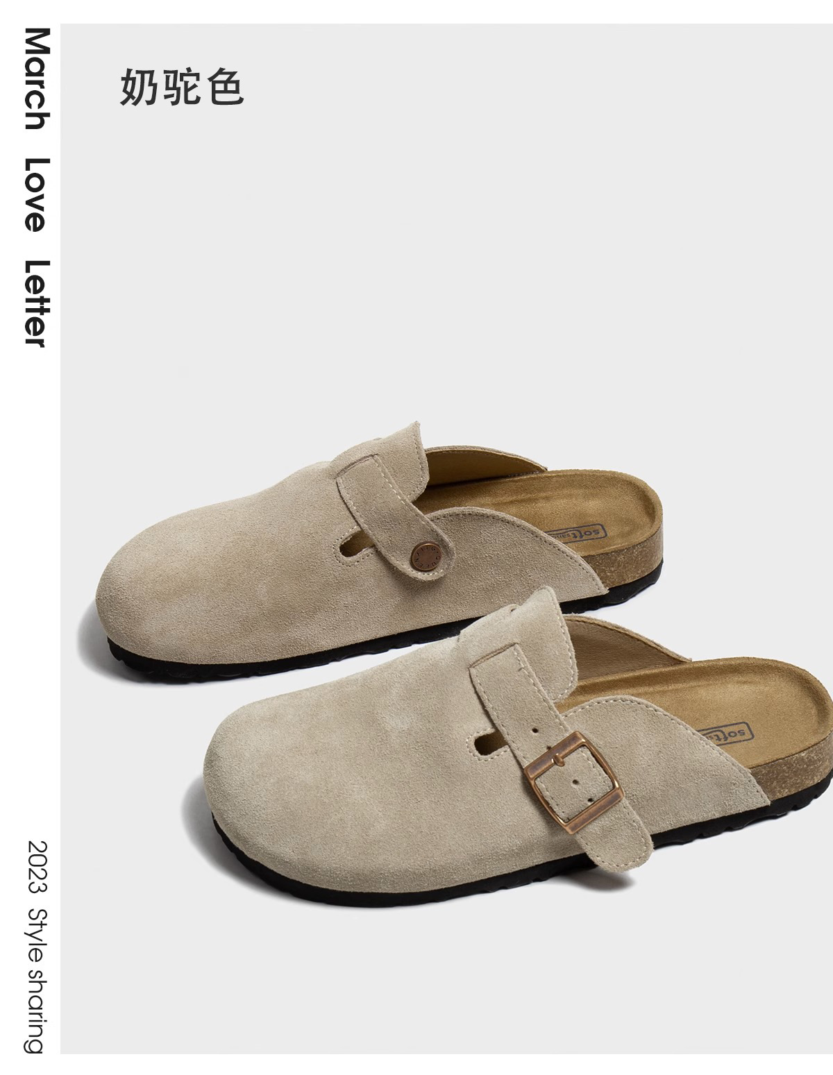 [Weiwei Girl] 전체 가죽 보켄 여성 신발 두꺼운 슬리퍼 플랫 낚시 보켄 신발 Baotou 하프 슬리퍼 여성