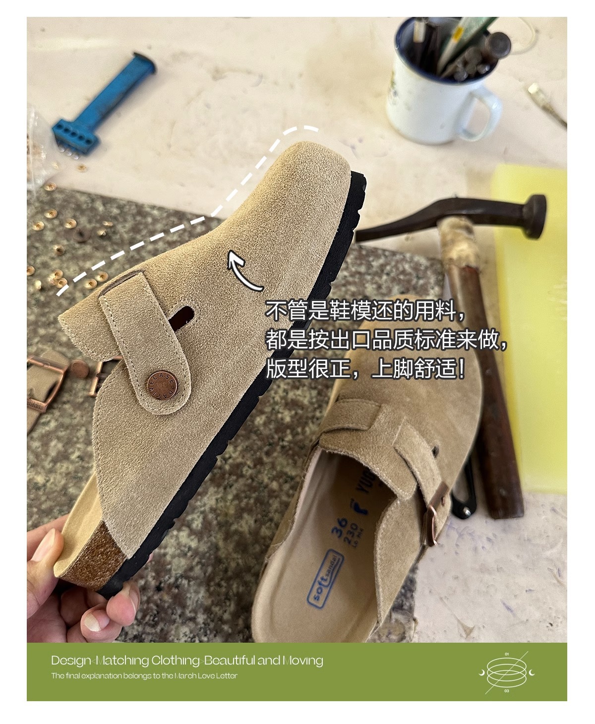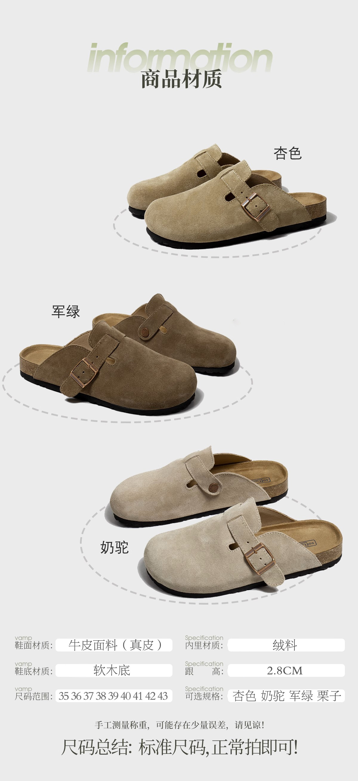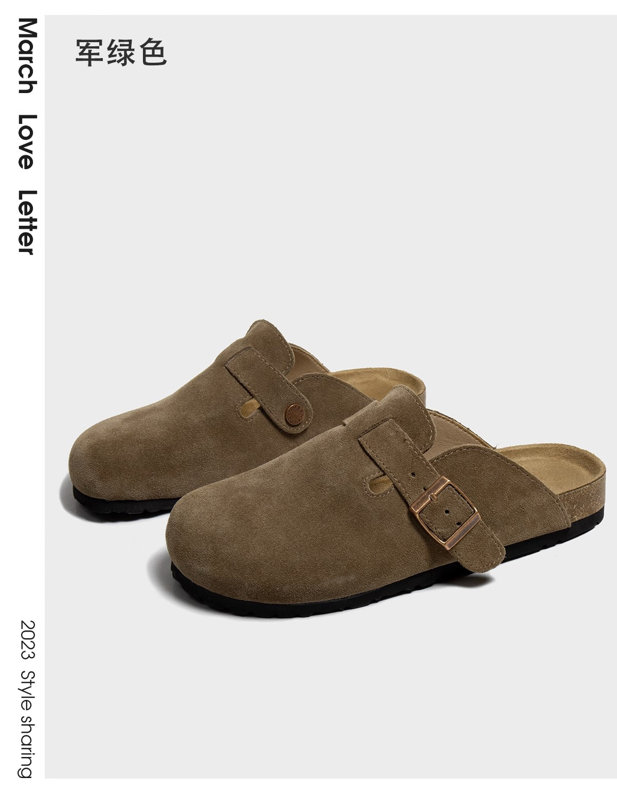 [Weiwei Girl] 전체 가죽 보켄 여성 신발 두꺼운 슬리퍼 플랫 낚시 보켄 신발 Baotou 하프 슬리퍼 여성스토어 가기