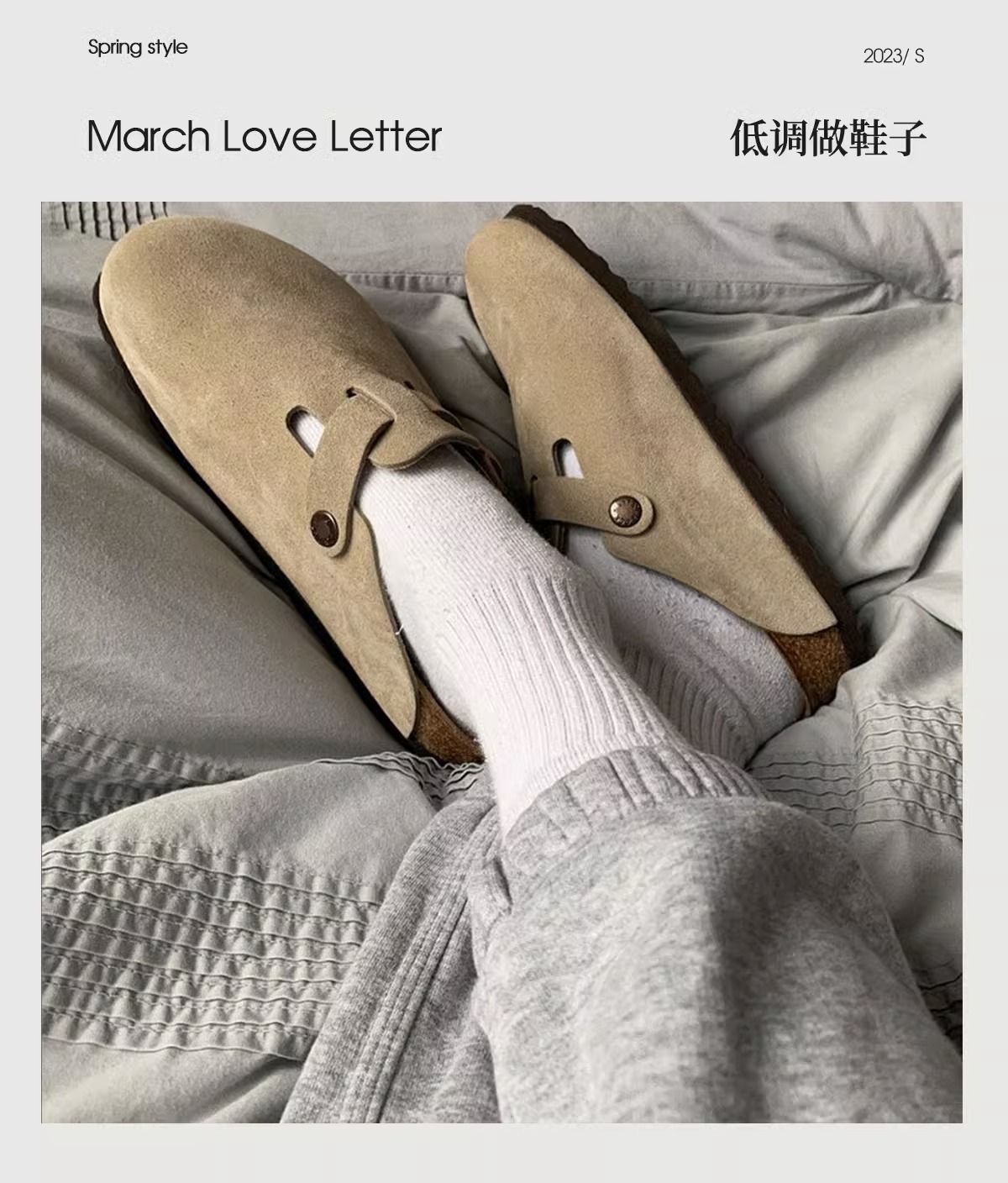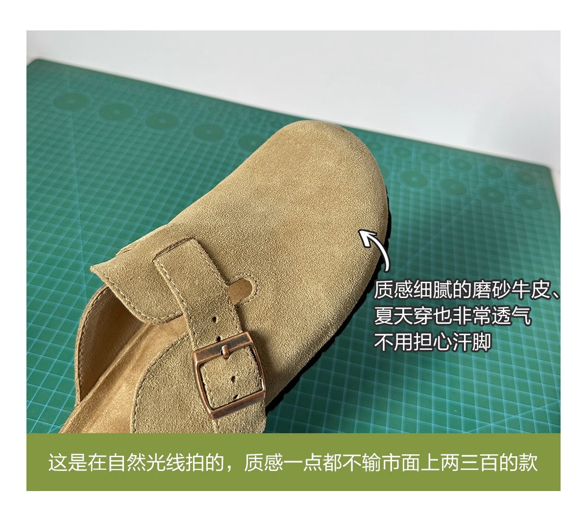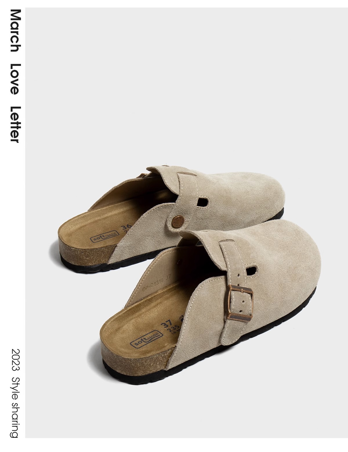 [Weiwei Girl] 전체 가죽 보켄 여성 신발 두꺼운 슬리퍼 플랫 낚시 보켄 신발 Baotou 하프 슬리퍼 여성스토어 가기