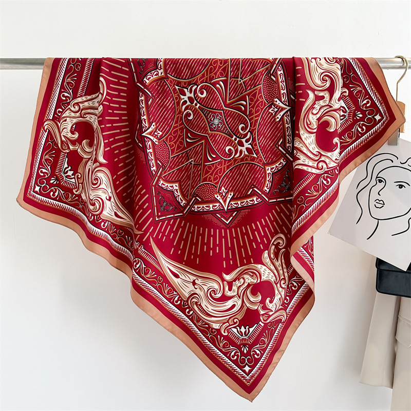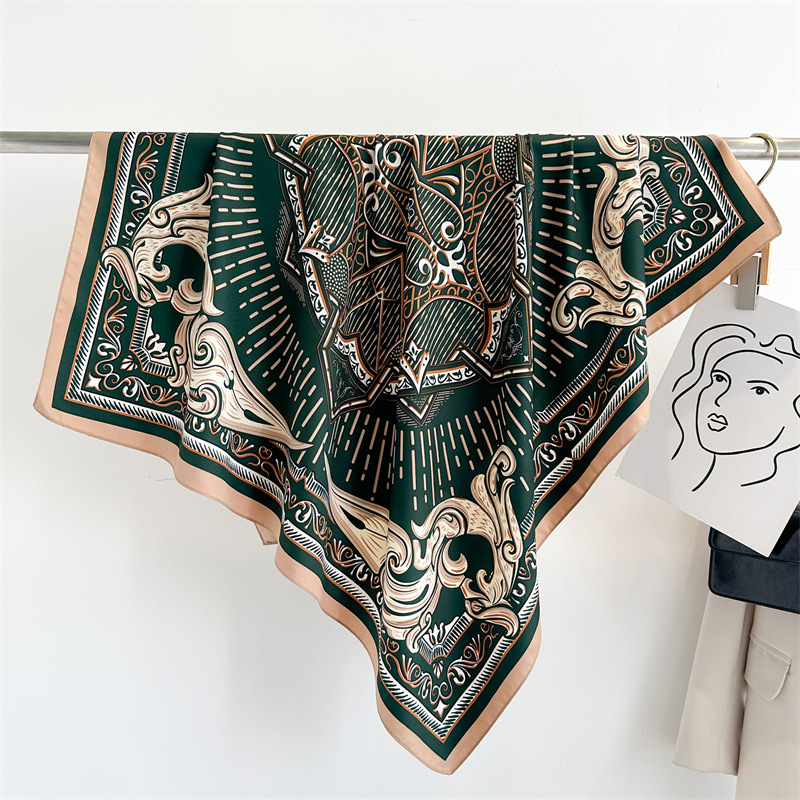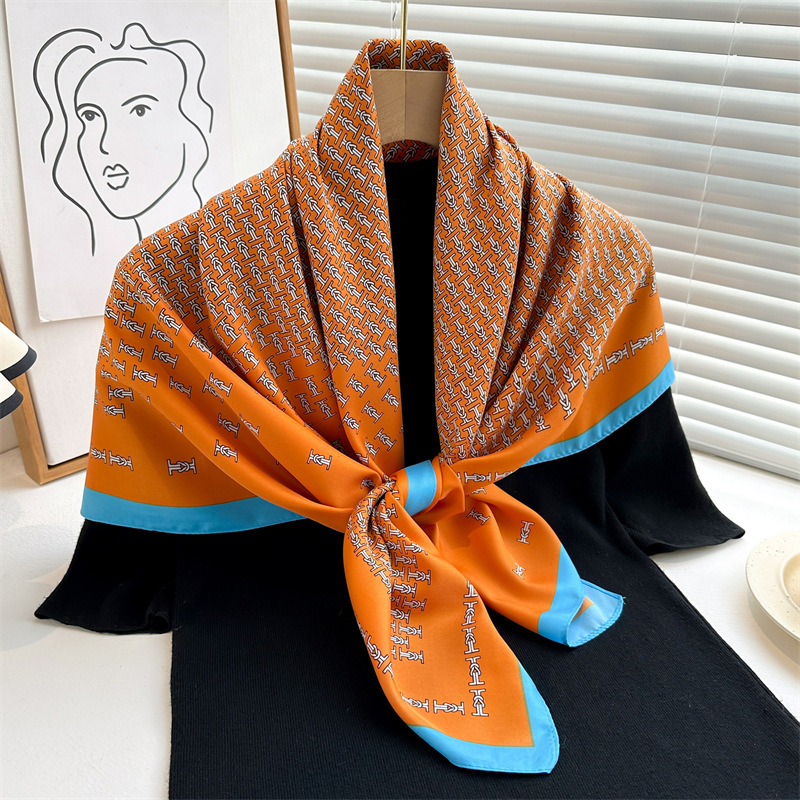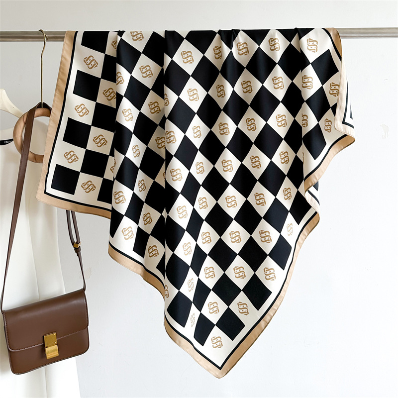 체스 판 격자 무늬 스카프 여성 스퀘어 스카프 90cm 대형 후드 티 실크 숄 라이트 럭셔리 스타일 우아한