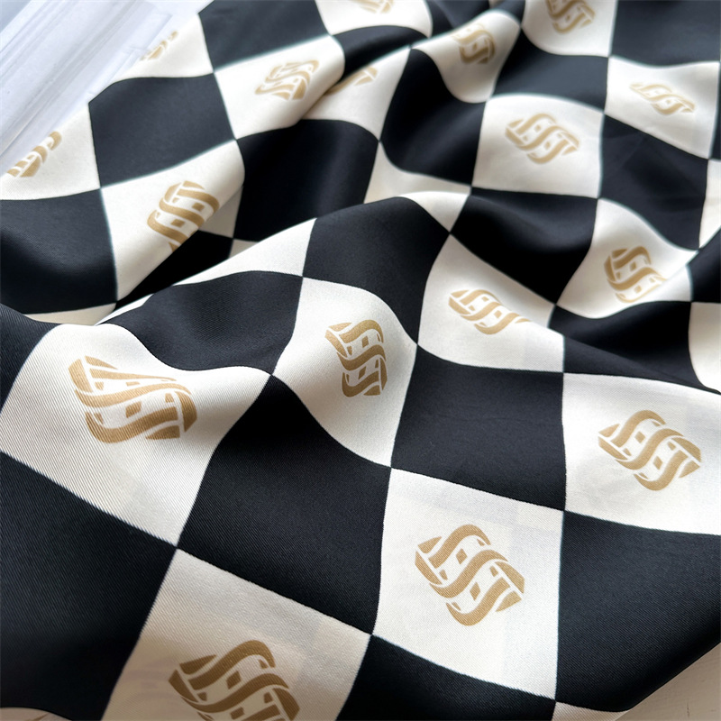 체스 판 격자 무늬 스카프 여성 스퀘어 스카프 90cm 대형 후드 티 실크 숄 라이트 럭셔리 스타일 우아한스토어 가기