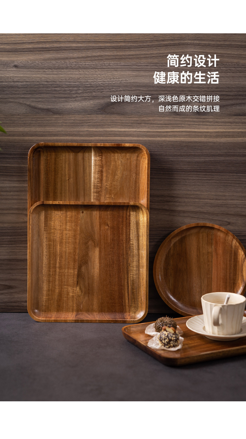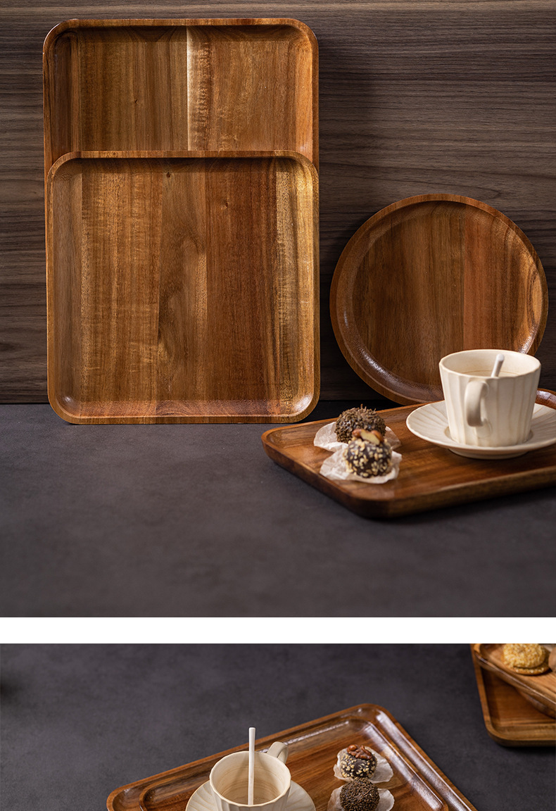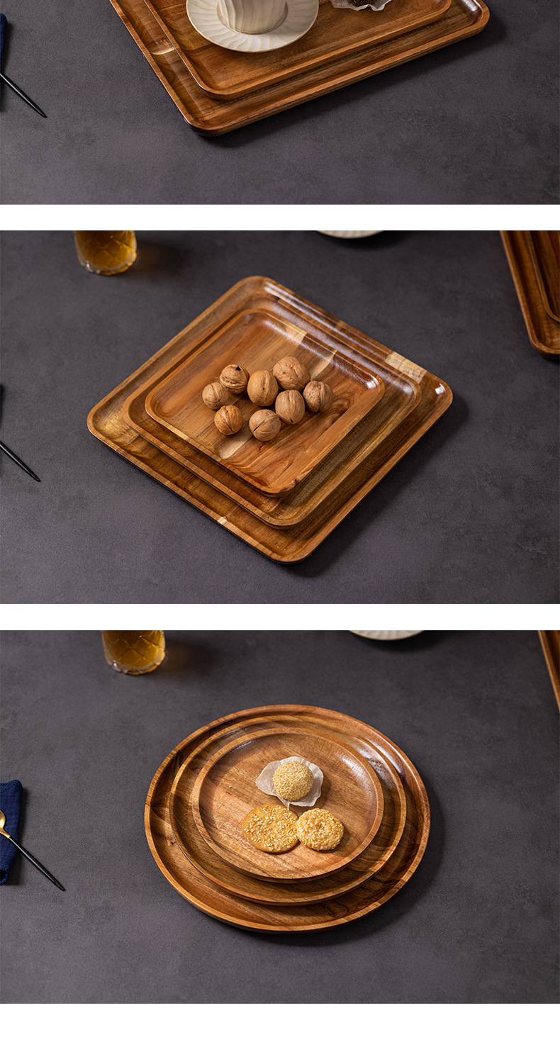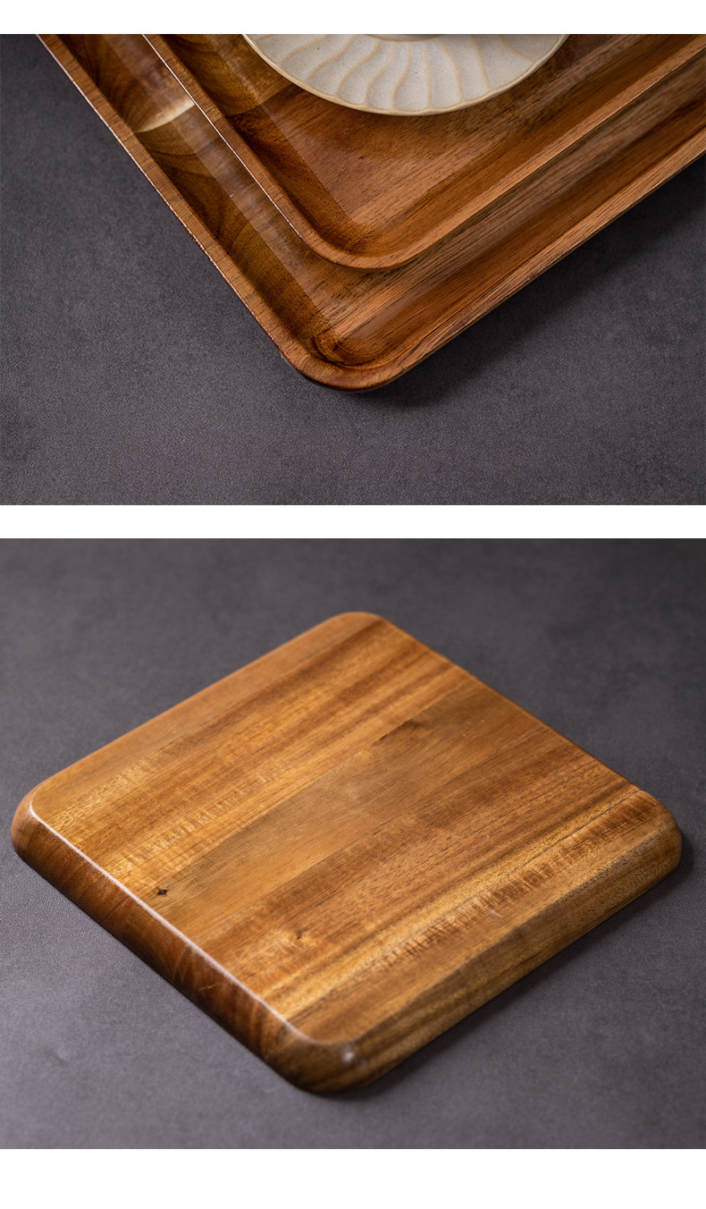 일본 아카시아 나무 차 트레이 빵 케이크 서양 음식 접시 단단한 아침 식사 접시 가정용 직사각형 작은 코스터 코스터스토어 가기