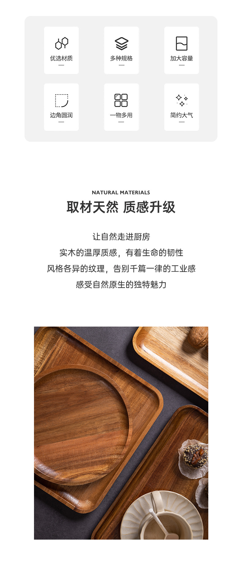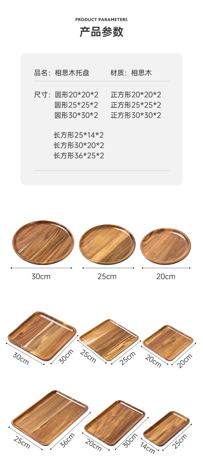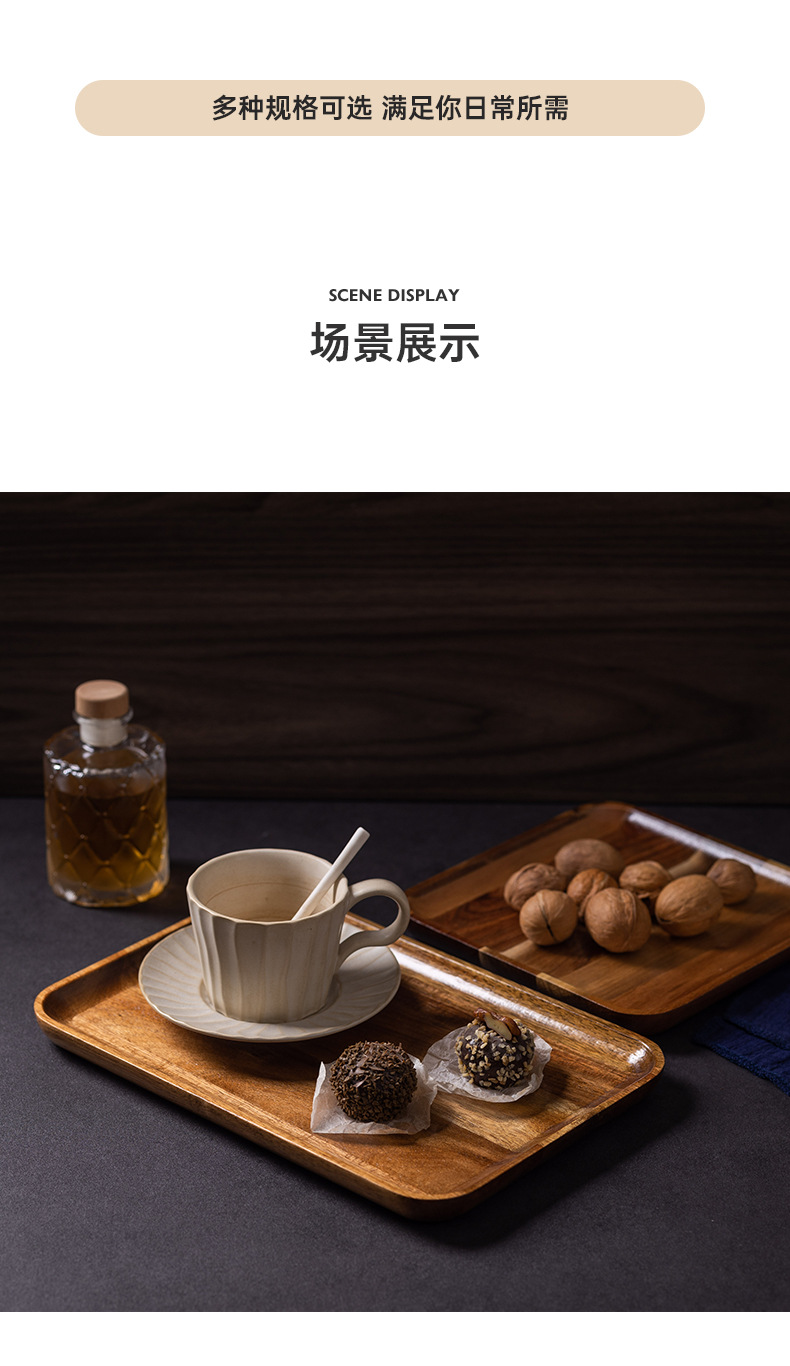 일본 아카시아 나무 차 트레이 빵 케이크 서양 음식 접시 단단한 아침 식사 접시 가정용 직사각형 작은 코스터 코스터스토어 가기