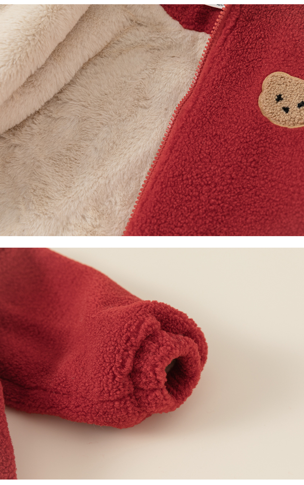 유바오 아동복 아동용 재킷 한국 스타일 어린이 만화 곰 플러시 상의 겨울 두꺼운 남아용 지퍼 셔츠