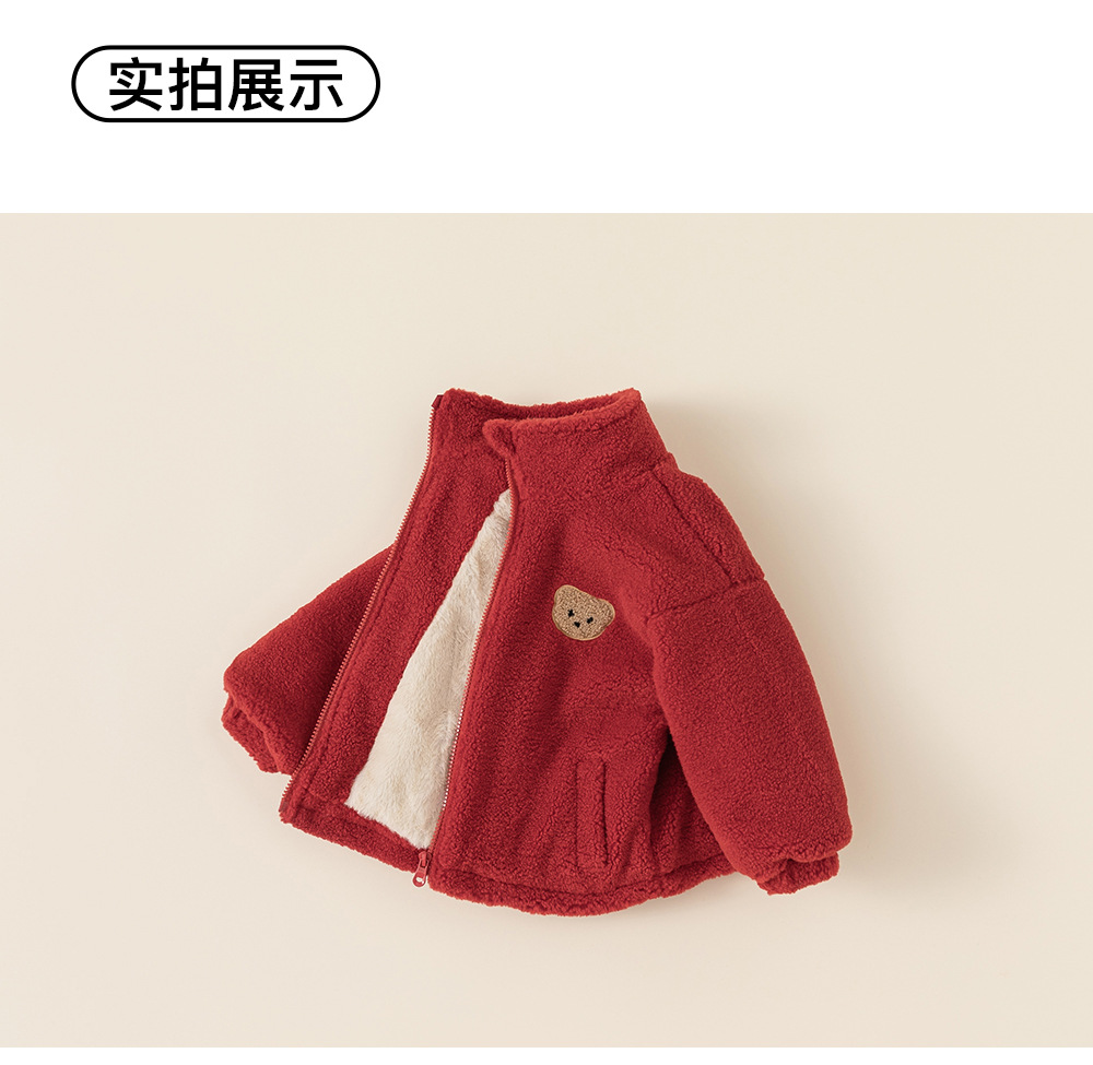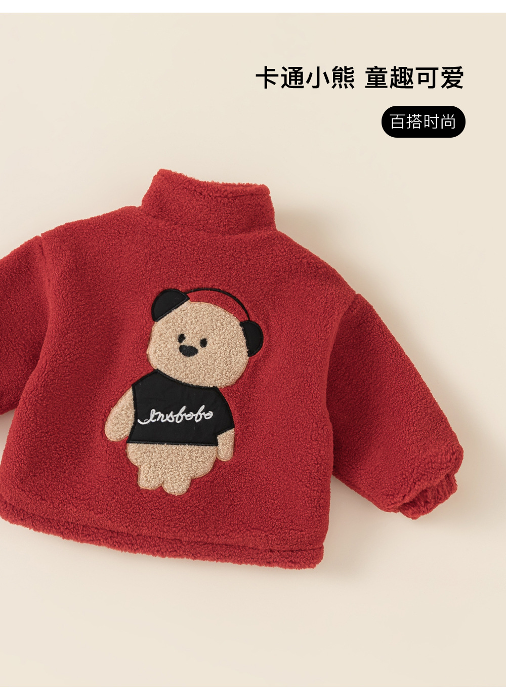 유바오 아동복 아동용 재킷 한국 스타일 어린이 만화 곰 플러시 상의 겨울 두꺼운 남아용 지퍼 셔츠스토어 가기