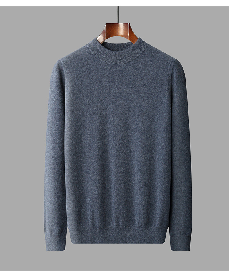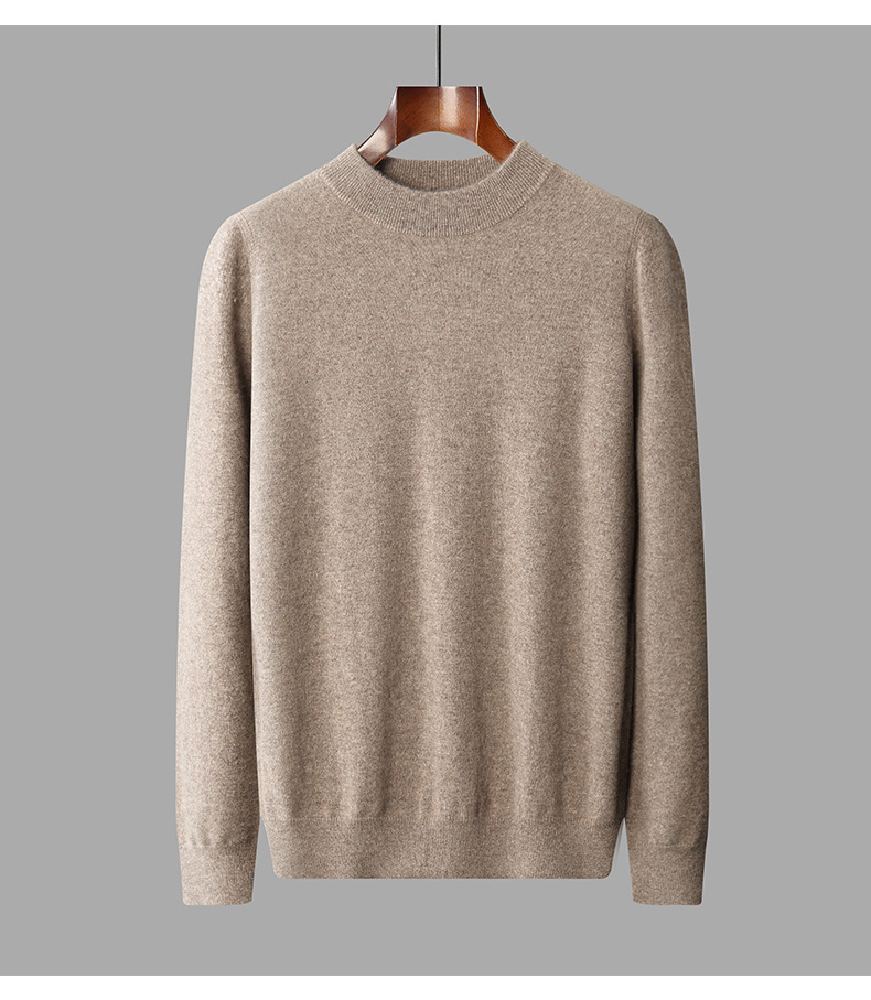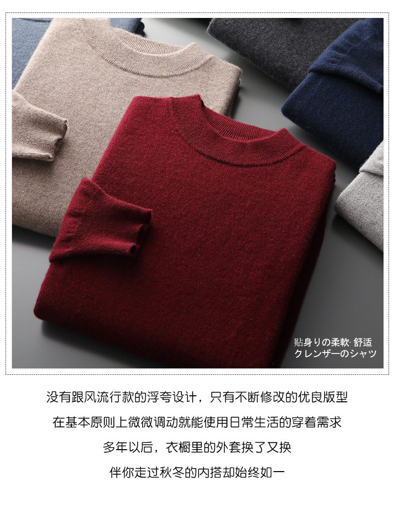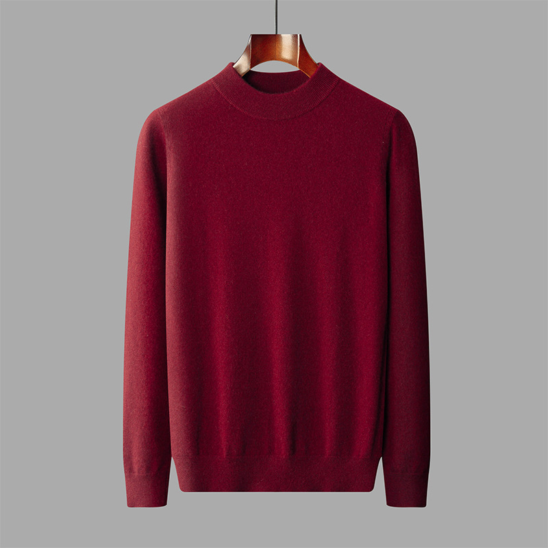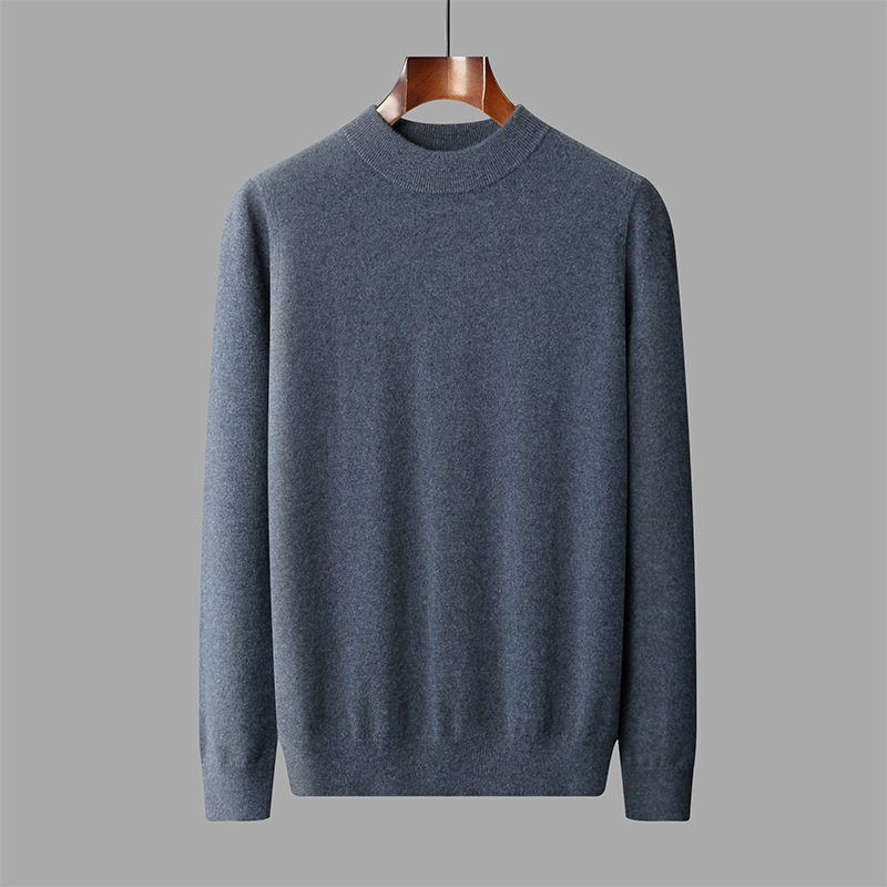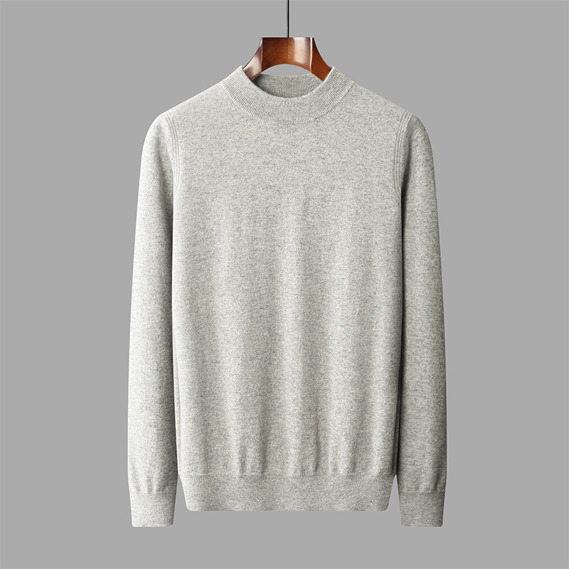 가을과 겨울 세미 하이 칼라 100 퓨어 캐시미어 스웨터 남성용 얇은 솔리드 컬러 이너베이스 니트 캐주얼 미드 넥 스웨터
