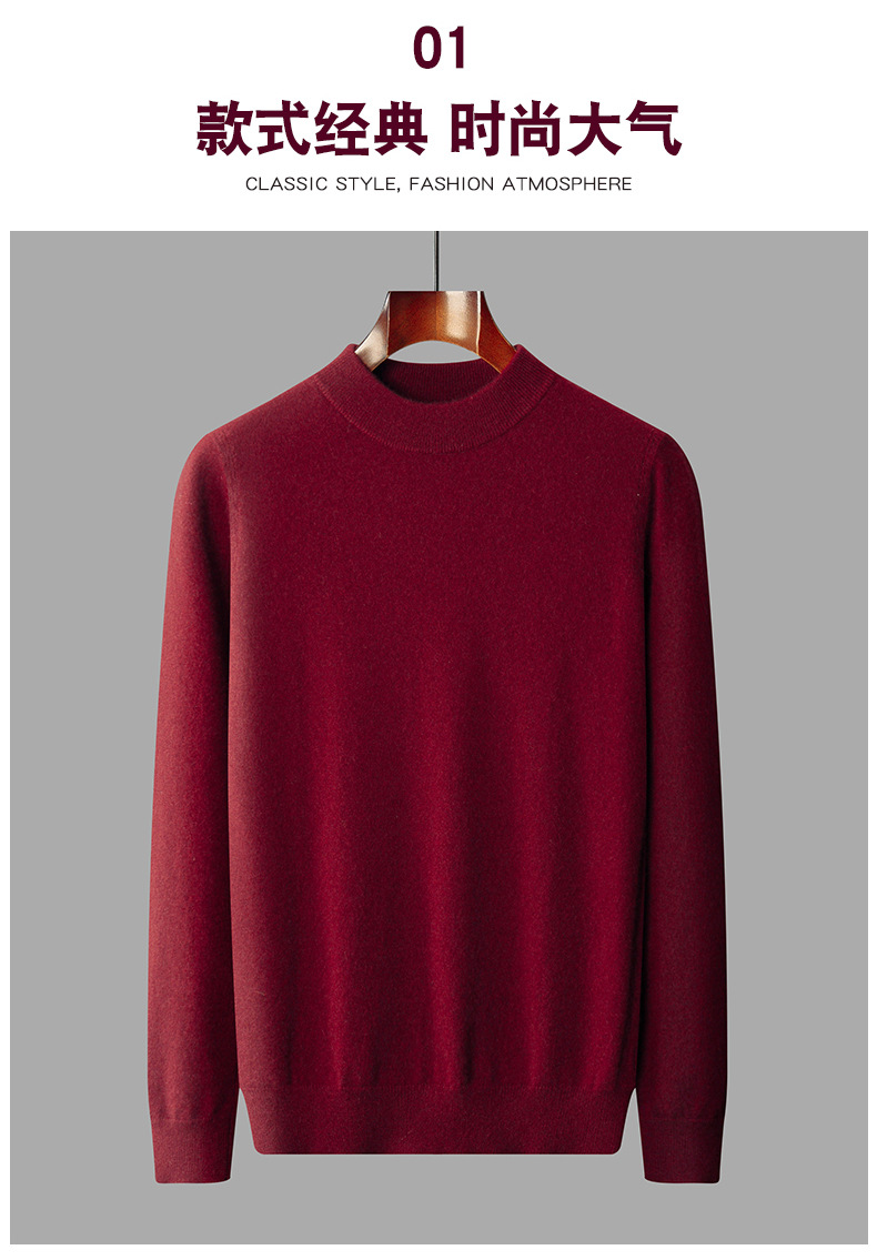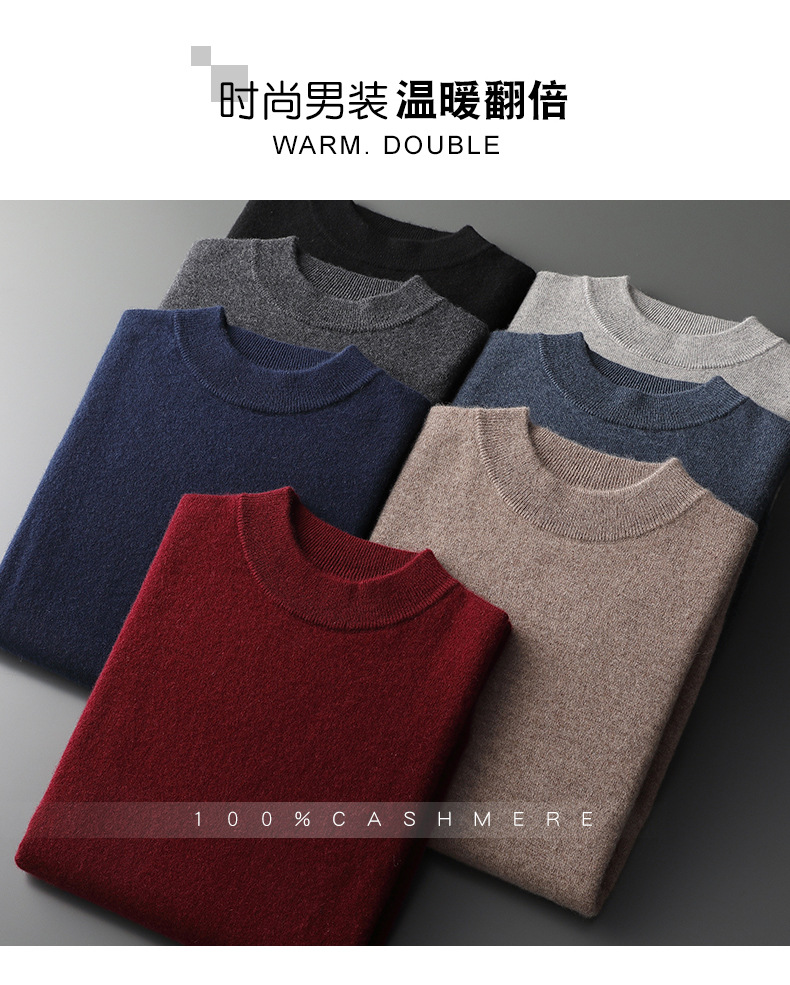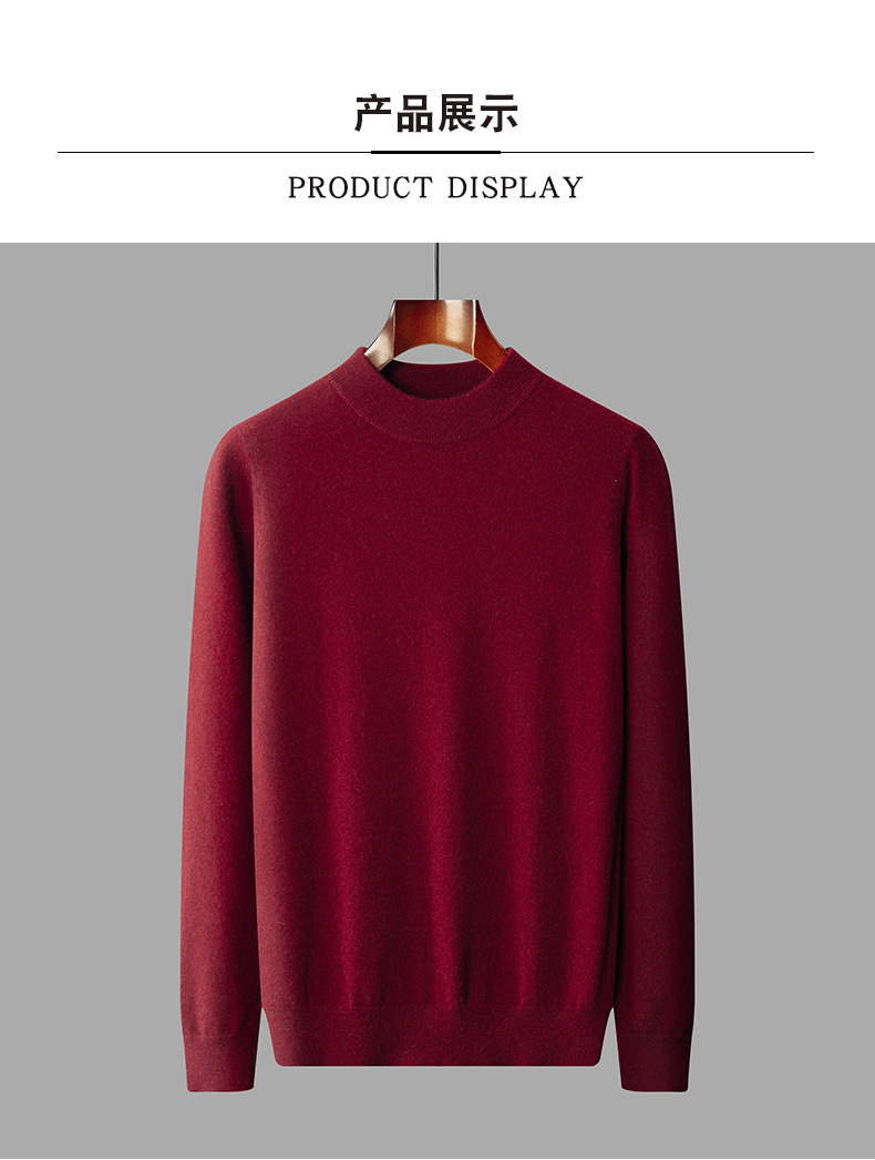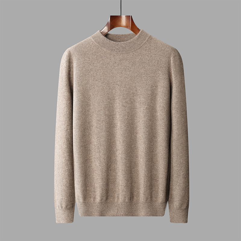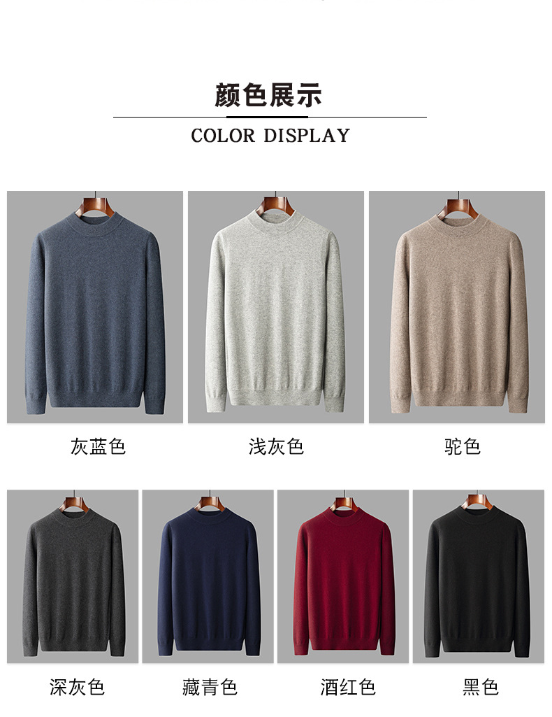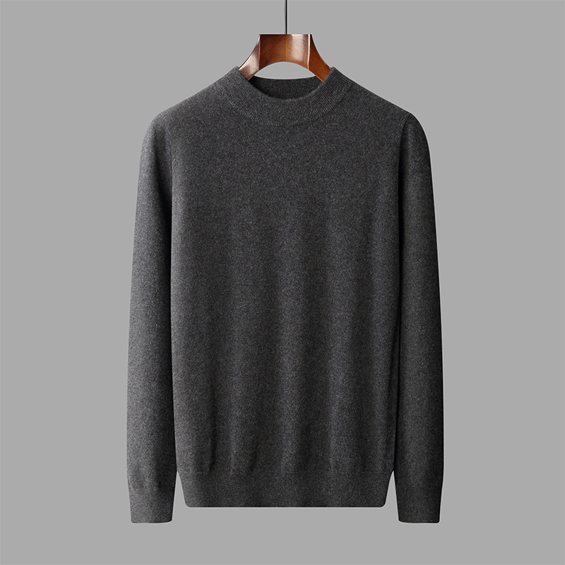 가을과 겨울 세미 하이 칼라 100 퓨어 캐시미어 스웨터 남성용 얇은 솔리드 컬러 이너베이스 니트 캐주얼 미드 넥 스웨터