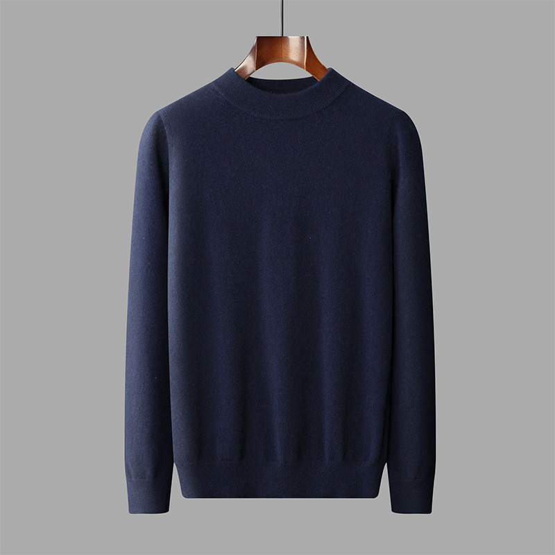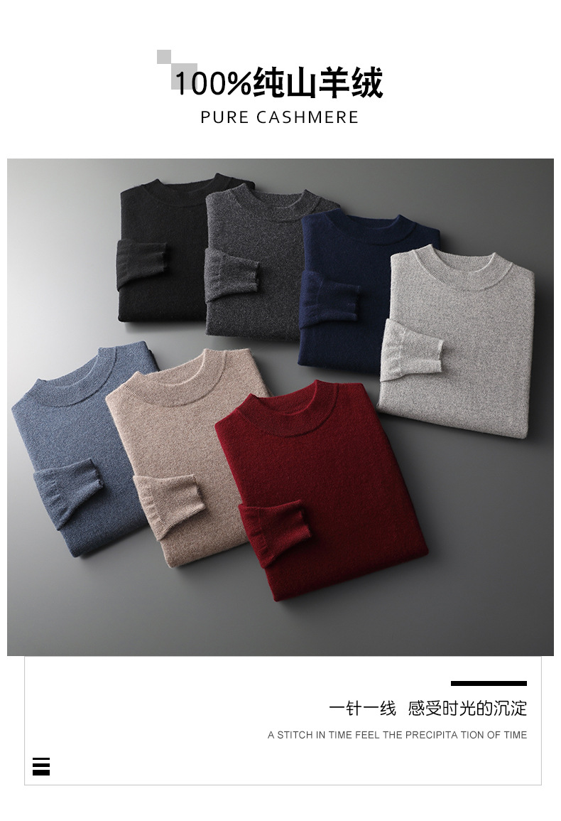 가을과 겨울 세미 하이 칼라 100 퓨어 캐시미어 스웨터 남성용 얇은 솔리드 컬러 이너베이스 니트 캐주얼 미드 넥 스웨터스토어 가기