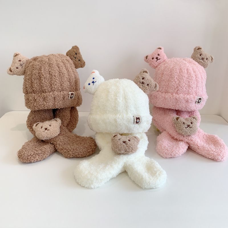 곰 봉제 아기 모자 가을과 겨울 아기 모자 스카프 원피스 투피스 어린이 따뜻한 귀 보호 캡 슈퍼 귀여운