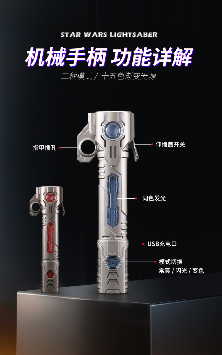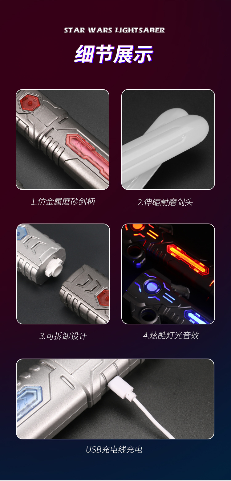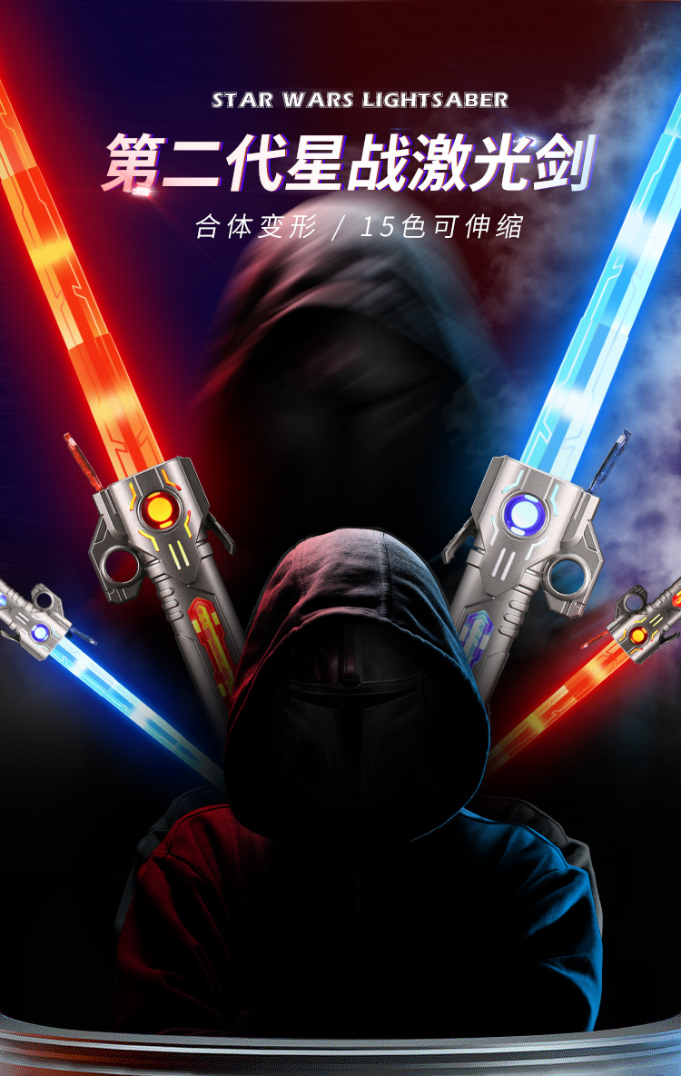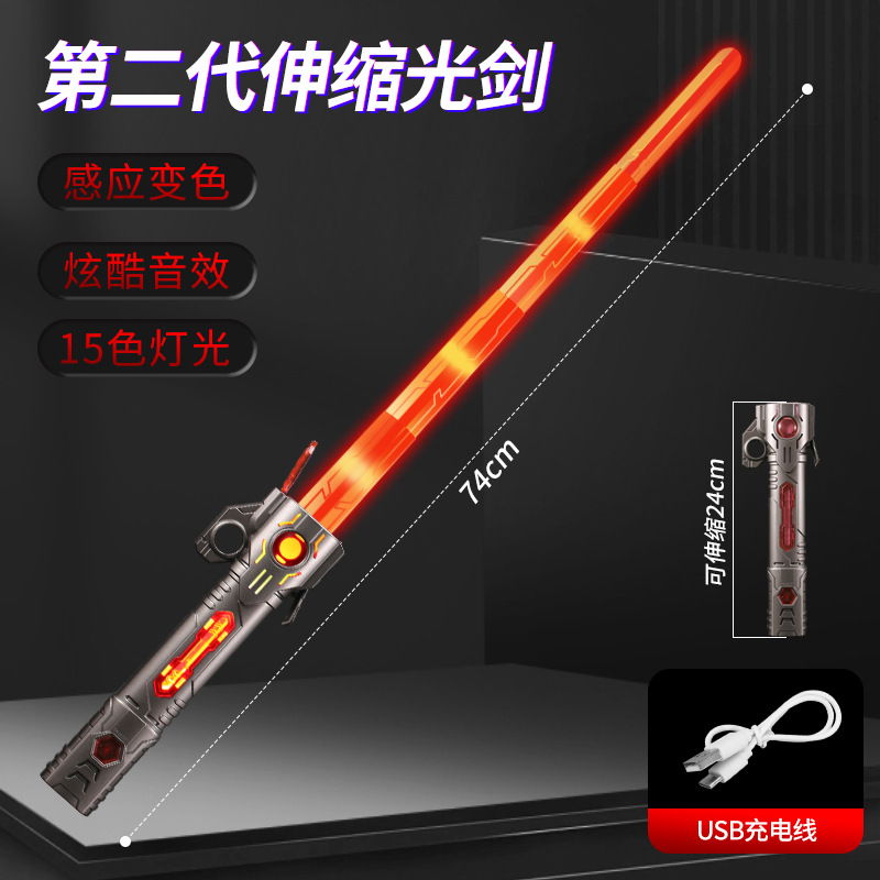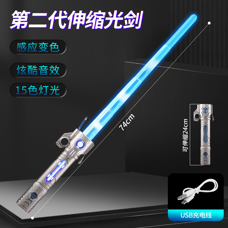 TikTok 다채로운 텔레스코픽 음악 레이저 검 스타 워즈 투인원 손가락 회전 어린이 장난감 광선검 크로스 보더스토어 가기