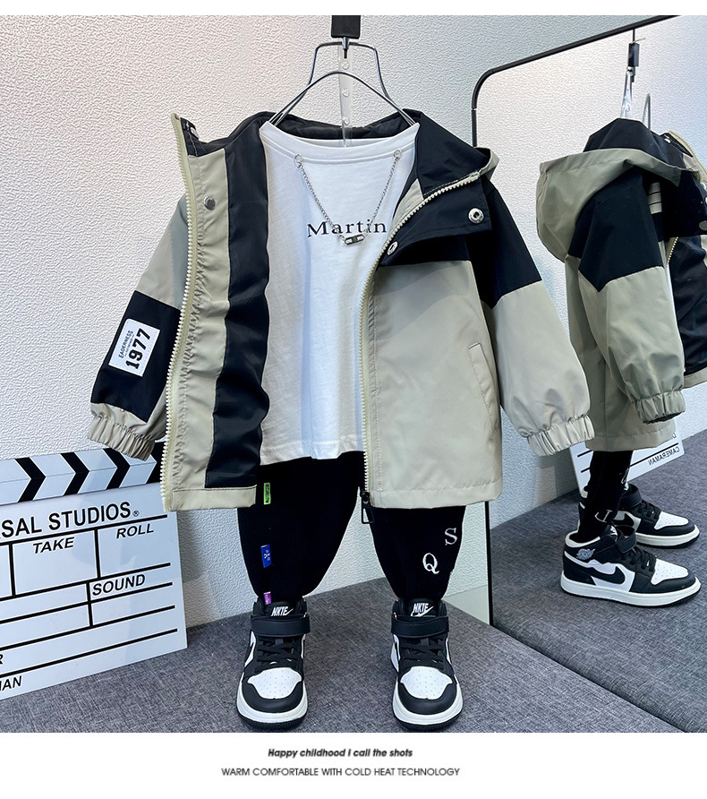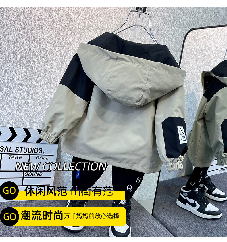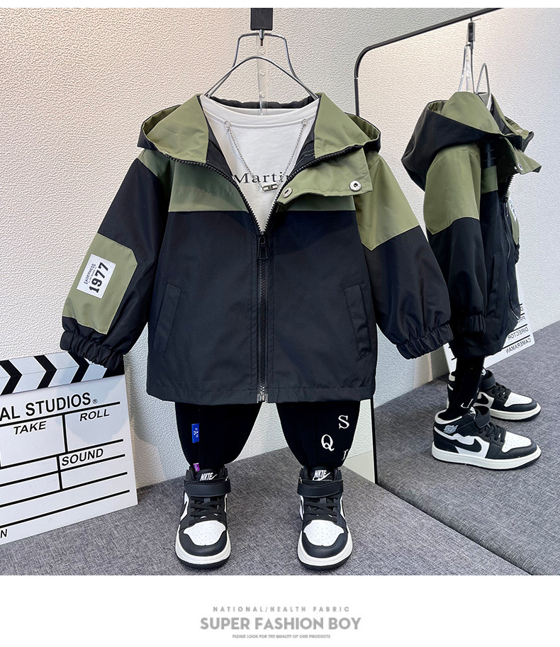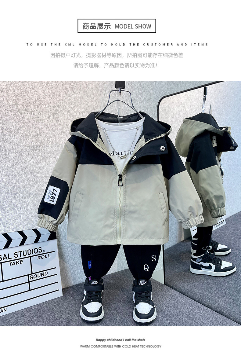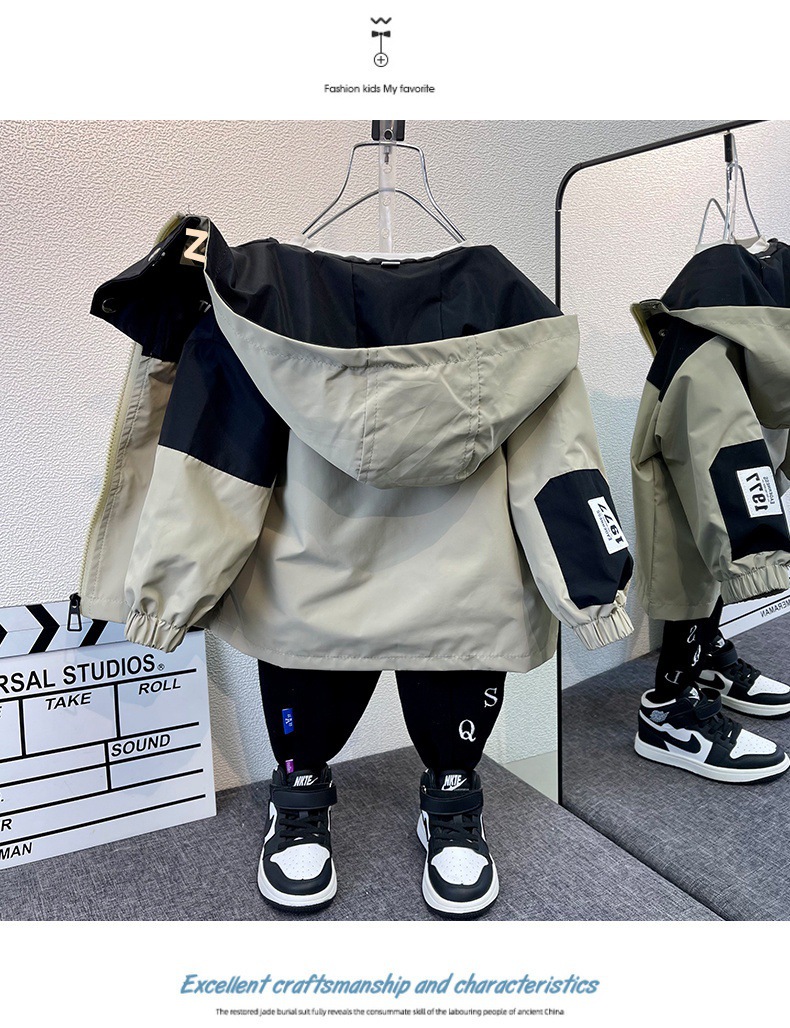 남아 봄 옷 재킷 2023 새로운 서양식 아기 봄과 가을 옷 어린이 한 팬 파이 슈아이 트렌치 코트