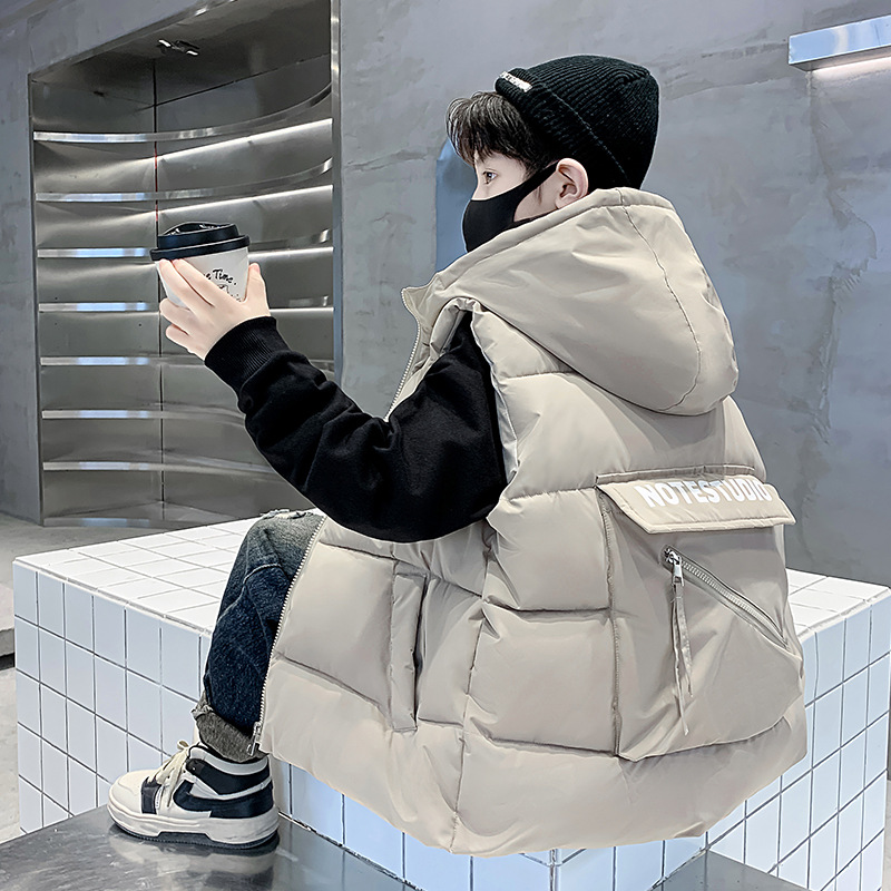 소년 작업복 조끼 봄, 가을 2025 새로운 유행 어린이 가을 조끼 겉옷 중대형 어린이 조끼 두꺼운 스타일스토어 가기