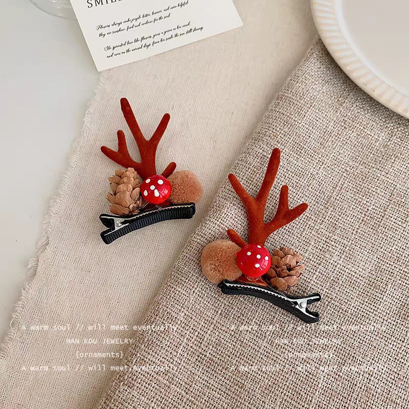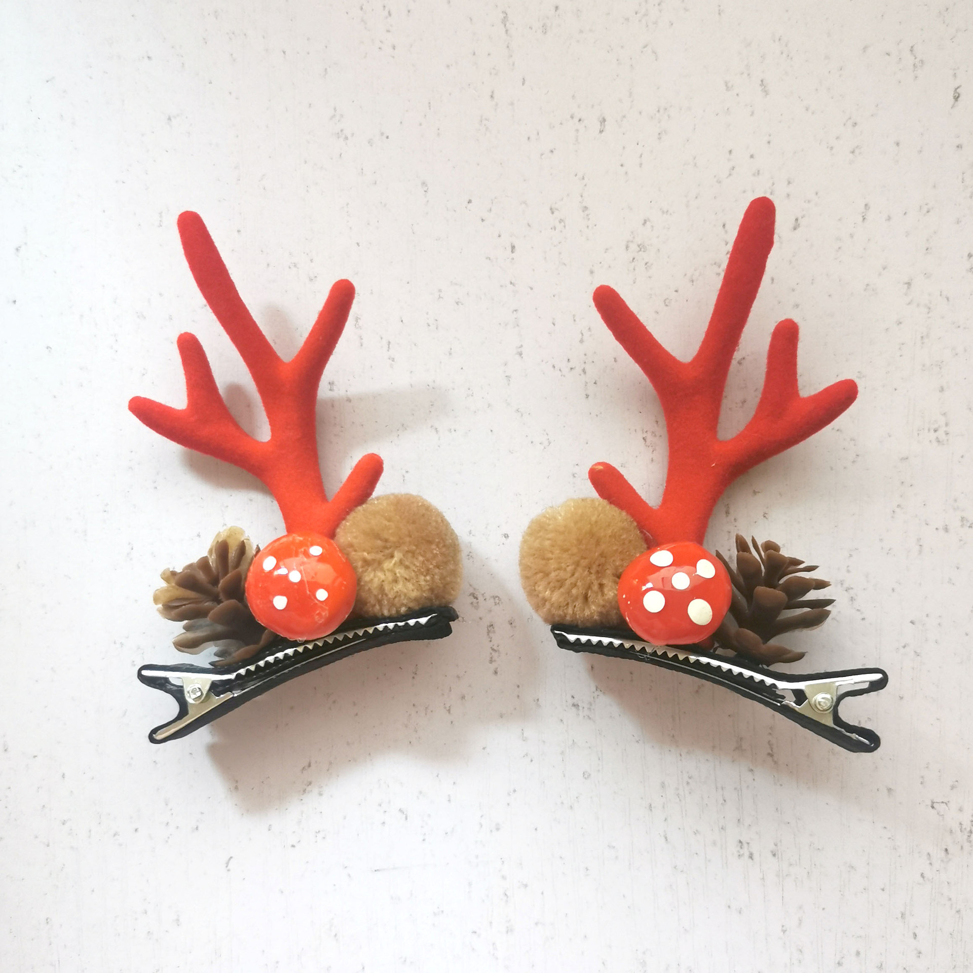 • 카드 볼 버섯 소나무 콘 빨간 뿔 머리핀
